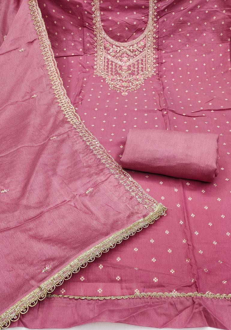 | Product Description | Women's Pink Unstitched Heavy Weaving Embroidered Neck And Fancy Border Modal Chanderi Dress Material Having Pink Color Unstitched Bottom Of Rayon Fabric And Pink Color Dupatta Of Nazneen Material With Awesome Pink Colour In Modal Chanderi Rayon Nazneen Fabric With Work Of Heavy Weaving Embroidered Neck And Fancy Border With Designer Embroidered Dupatta|| Images Are For The Referance Purpose Only, Color Of The Actual Product May Little Vary From The Image Due To Screen Resolution |