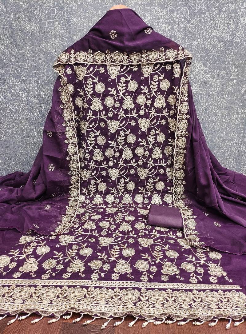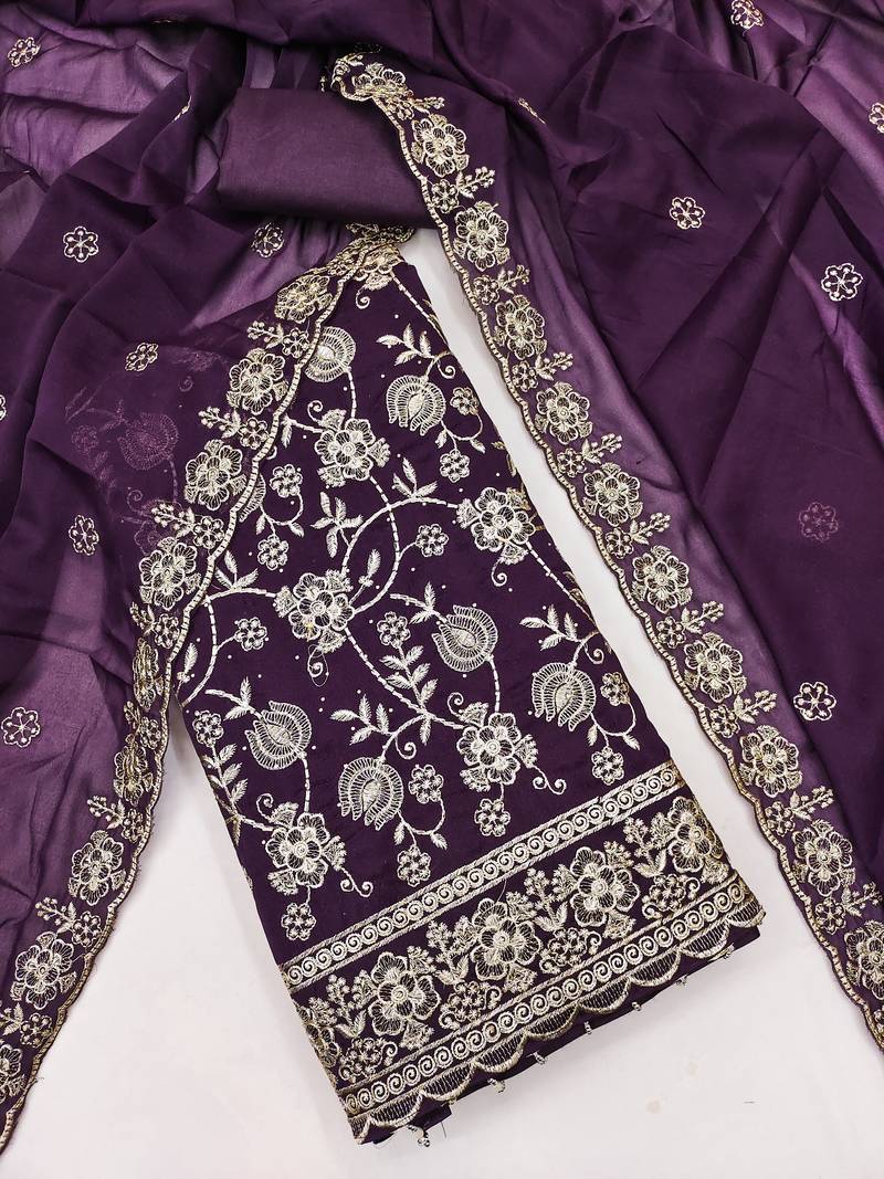 purple embroidery georgette dress material unstitched