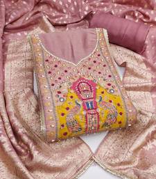 purple handwork simmer silk dress material unstitched