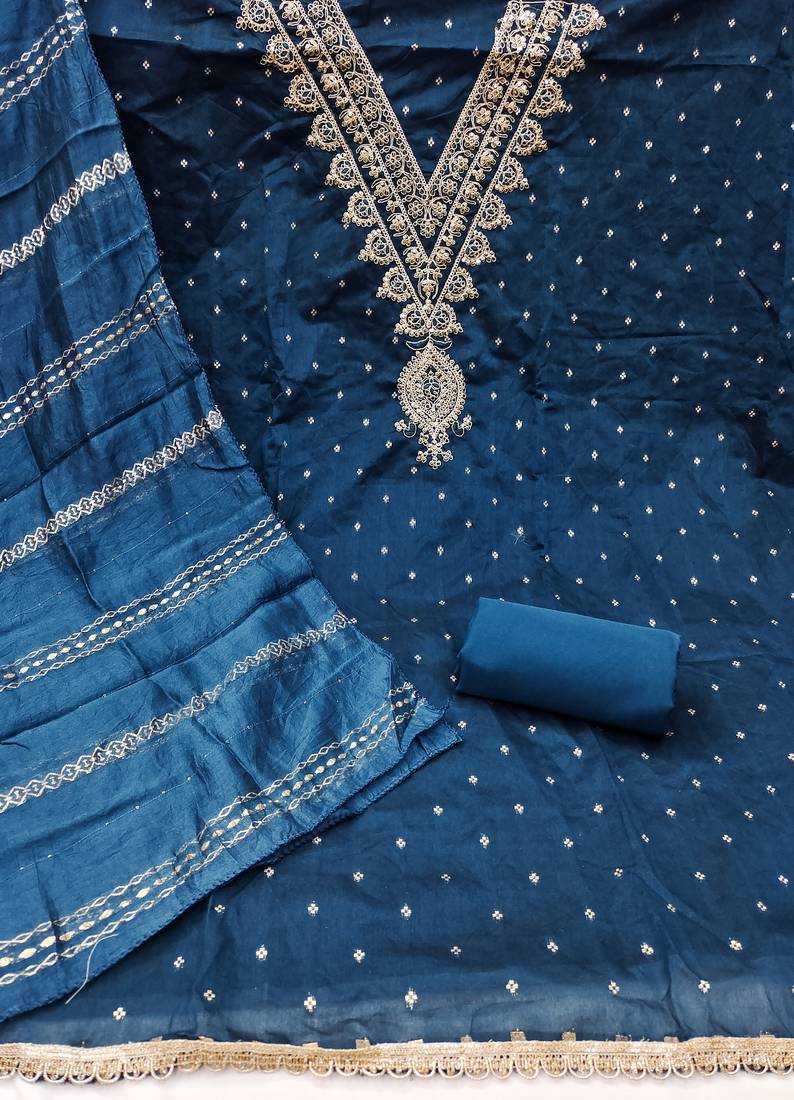 | Product Name | Teal Blue Embroidery Chanderi Dress Material | |