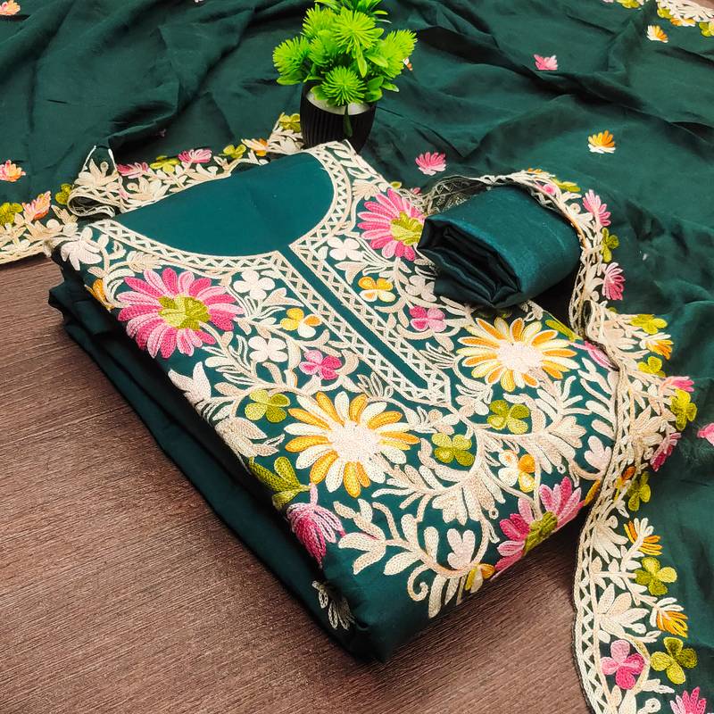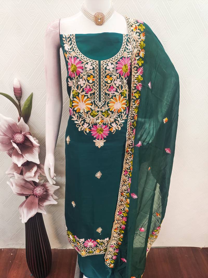 | Product Name | Women's Teal Blue Embroidery Silk Dress Material | |