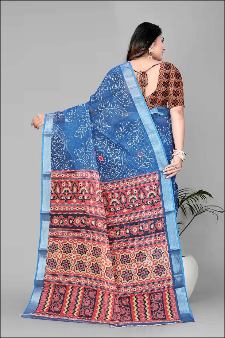 Fabric : Linen , Work: Digital Print , Saree Length: 6.3 (With Blouse ) , Blouse Fabric: Linen