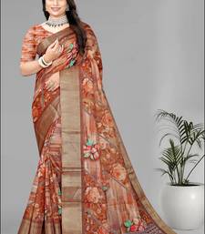 Brown dola digital floral print saree