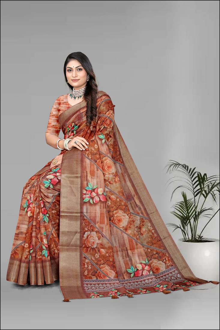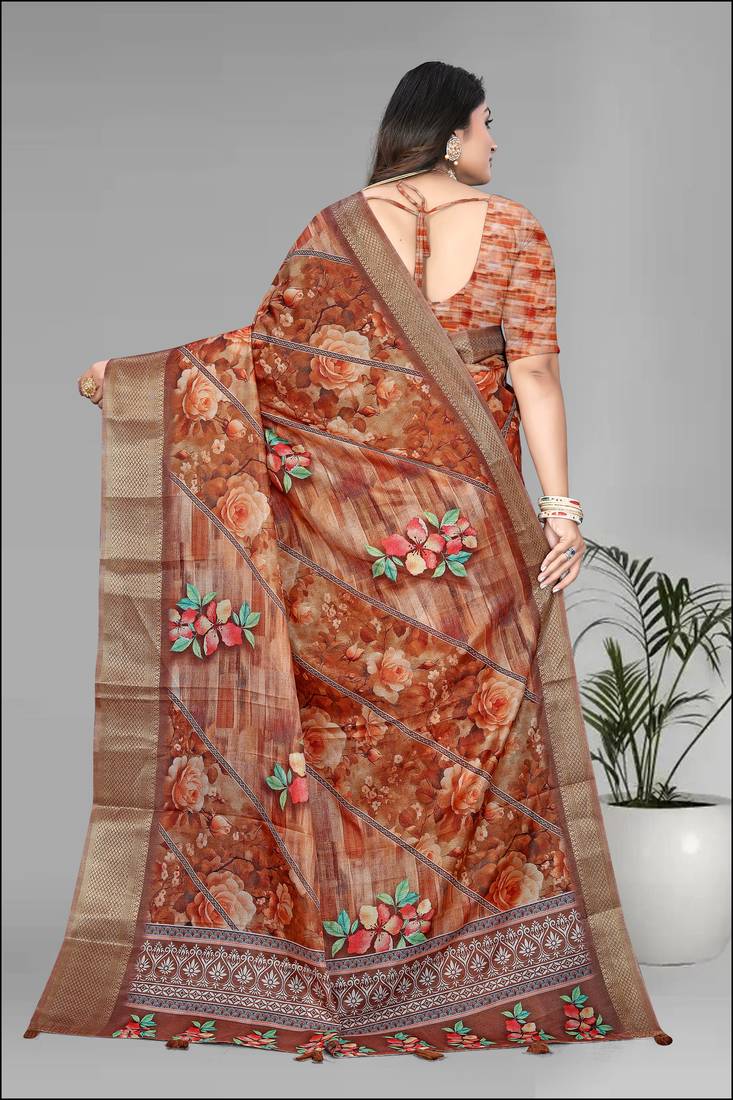 | Product Name | Brown Dola Digital Floral Print Saree | |