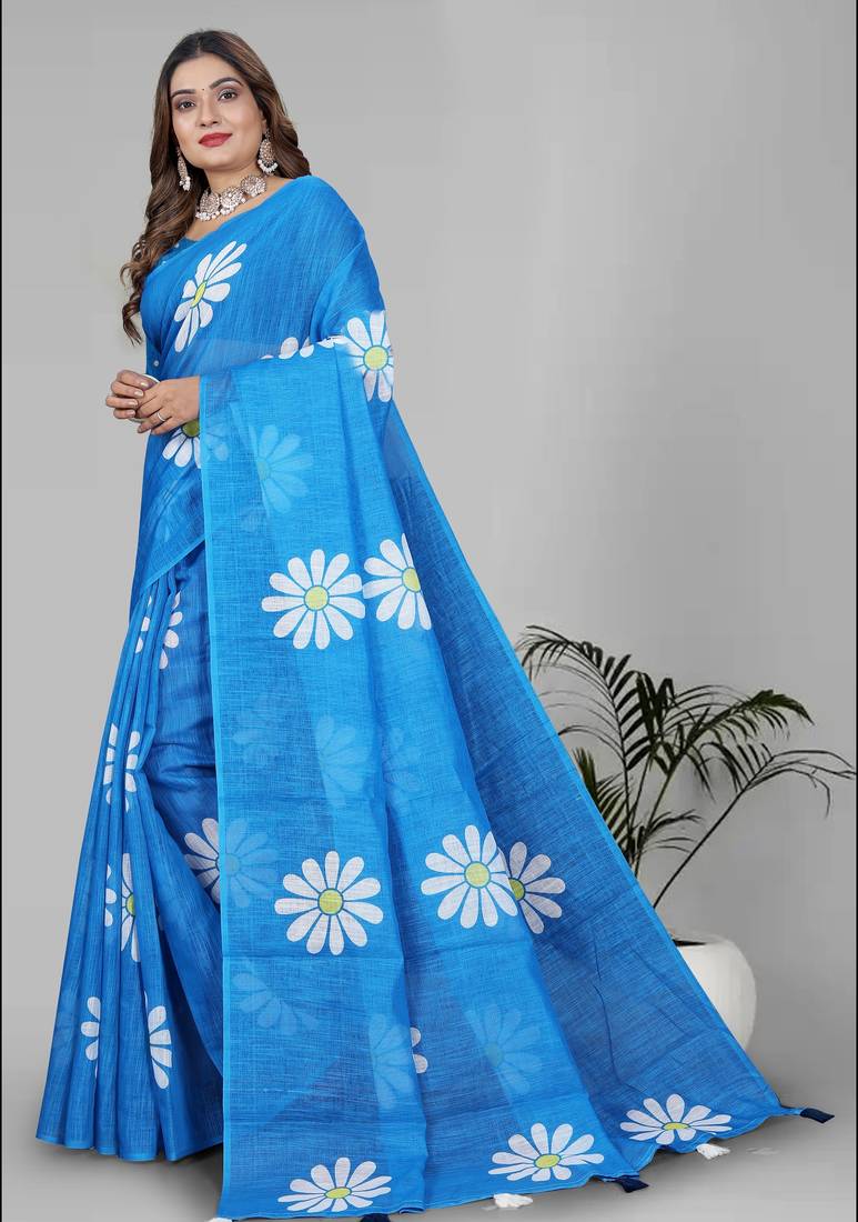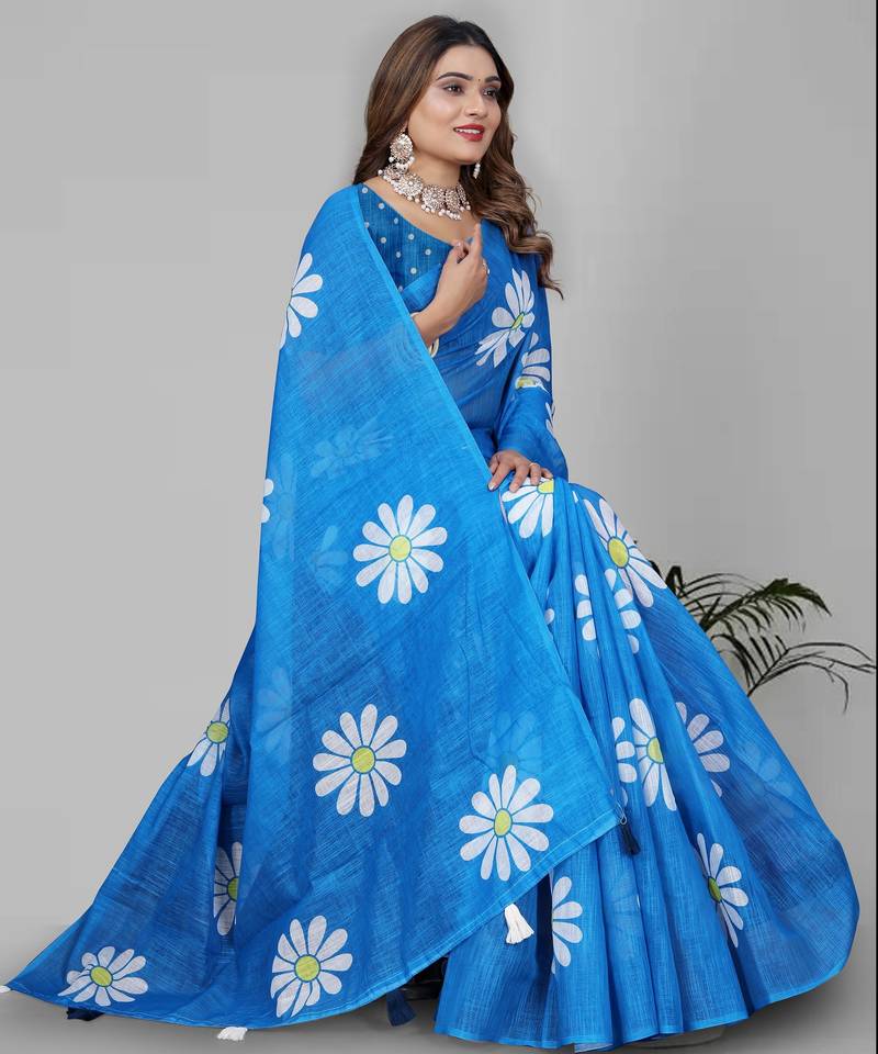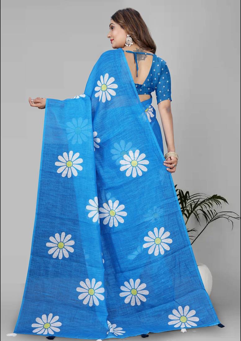| Product Name | Sky Blue Floral Linen Cotton Digital Print Saree (Blue) | |