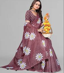 Brown floral linen cotton digital print saree (brown)