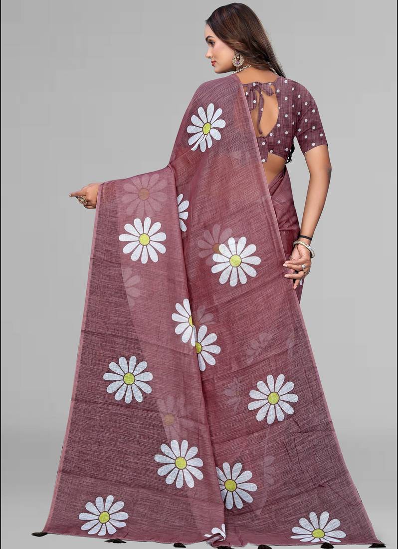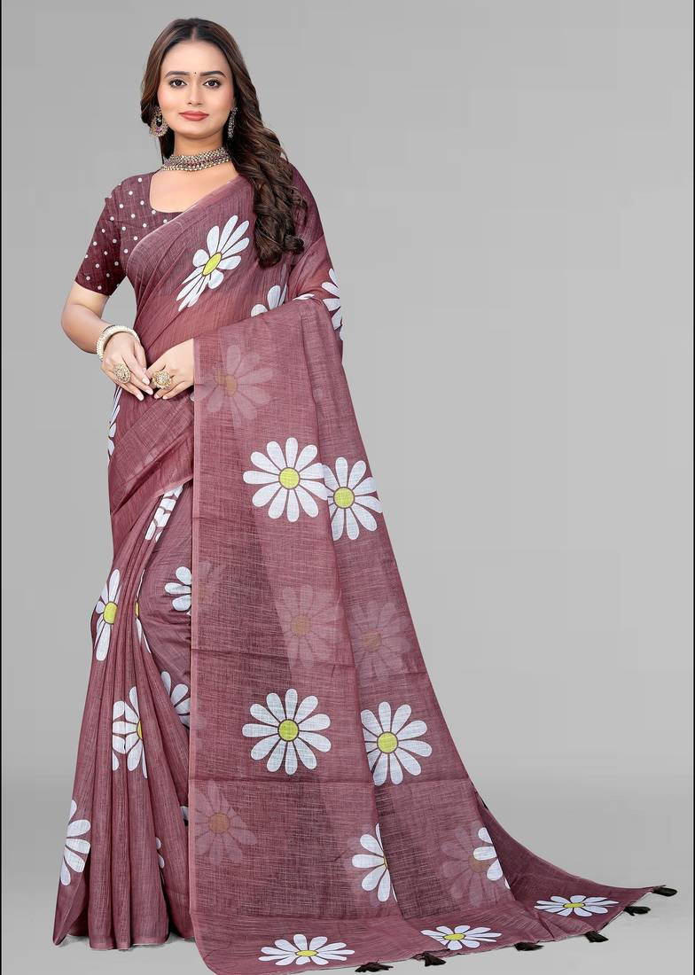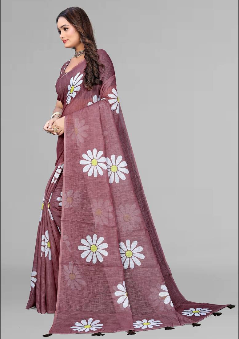 | Product Name | Brown Floral Linen Cotton Digital Print Saree (Brown) | |