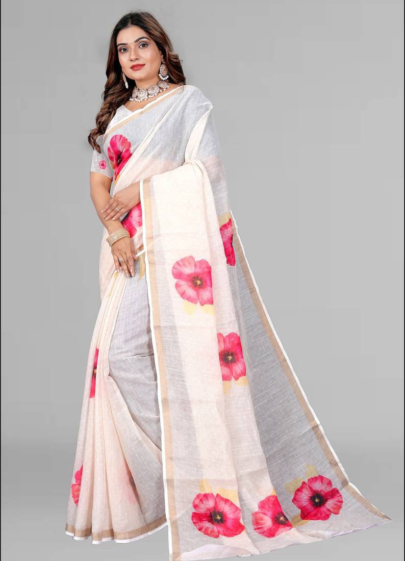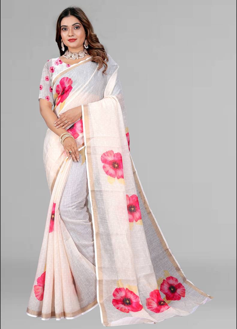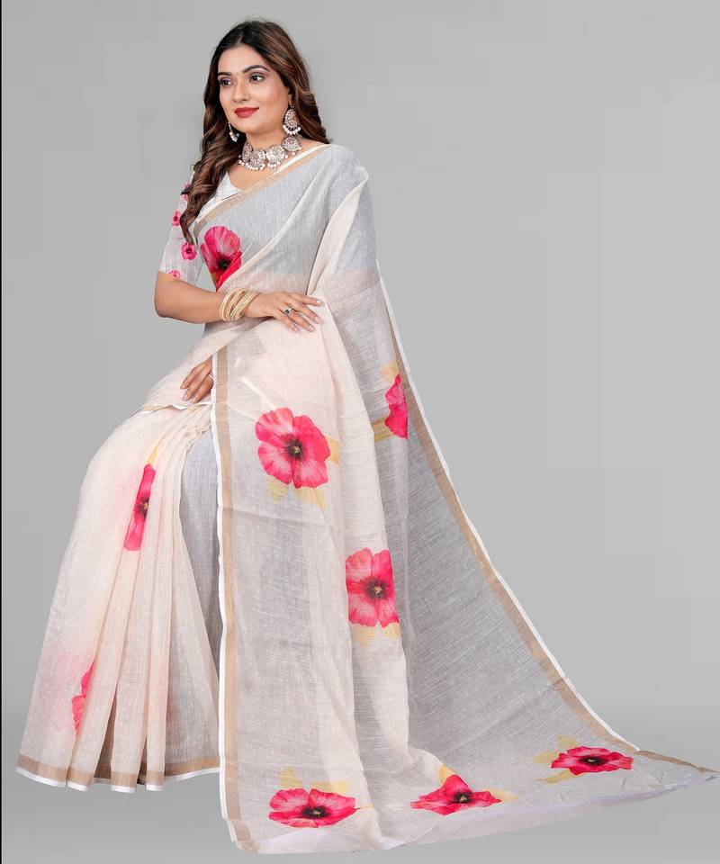 | Product Name | Off White Floral Linen Cotton Digital Print Saree ( Off White) | |