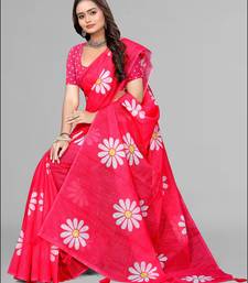 Pink floral linen cotton digital print saree (pink)