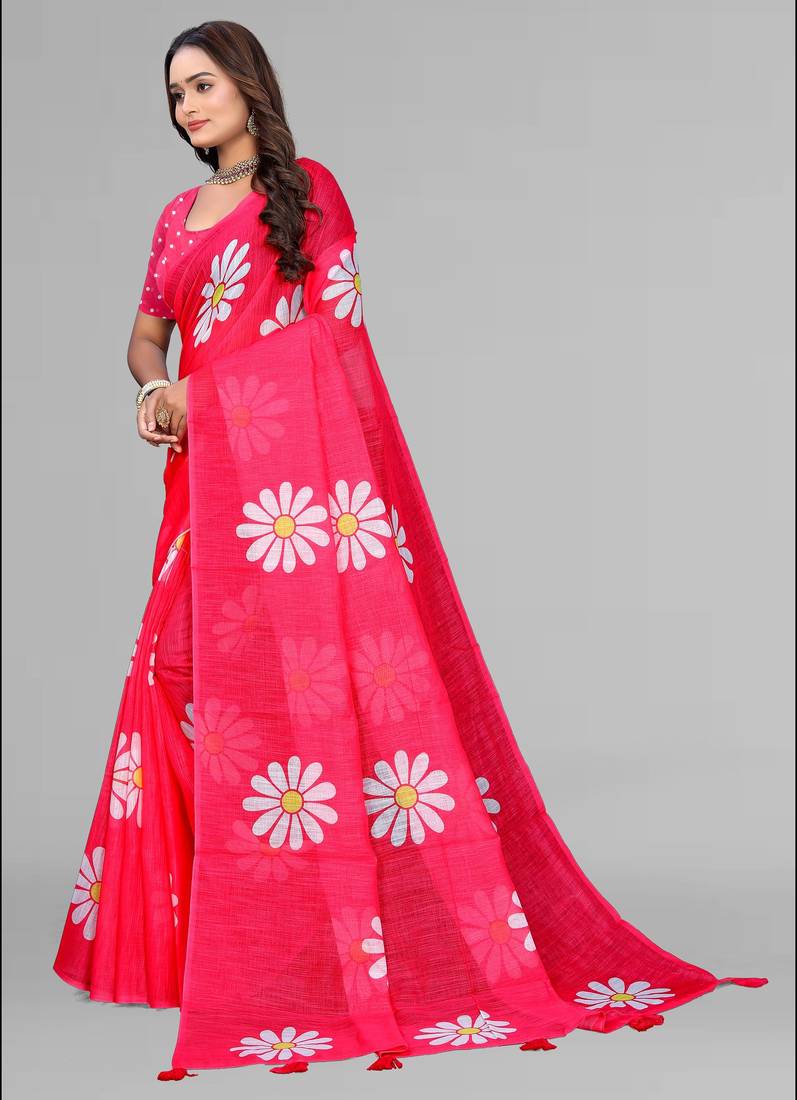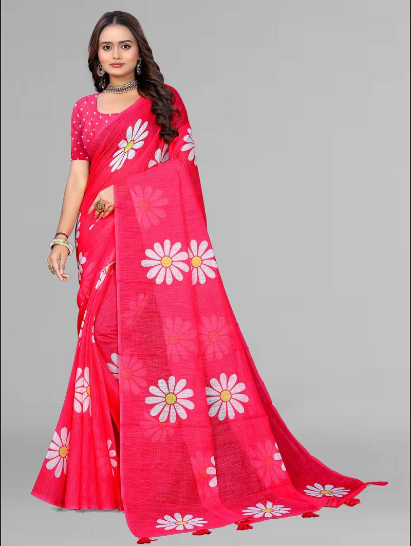 | Product Name | Pink Floral Linen Cotton Digital Print Saree (Pink) | |