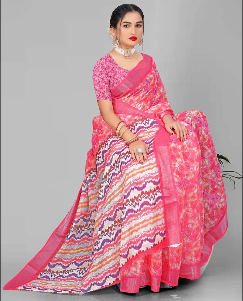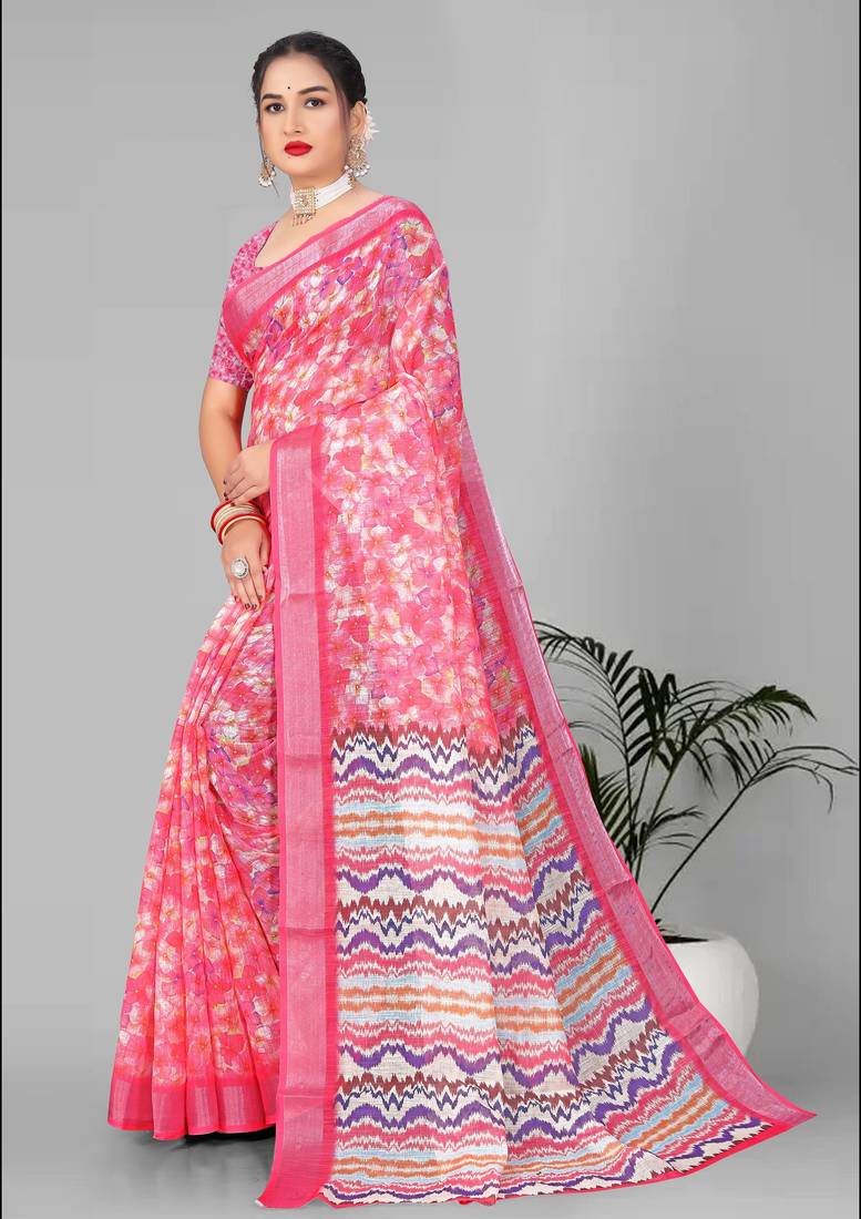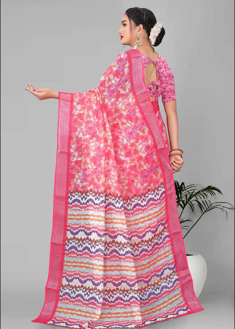 | Product Name | Pink Floral Linen Cotton Digital Print Saree (Pink) | |
