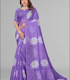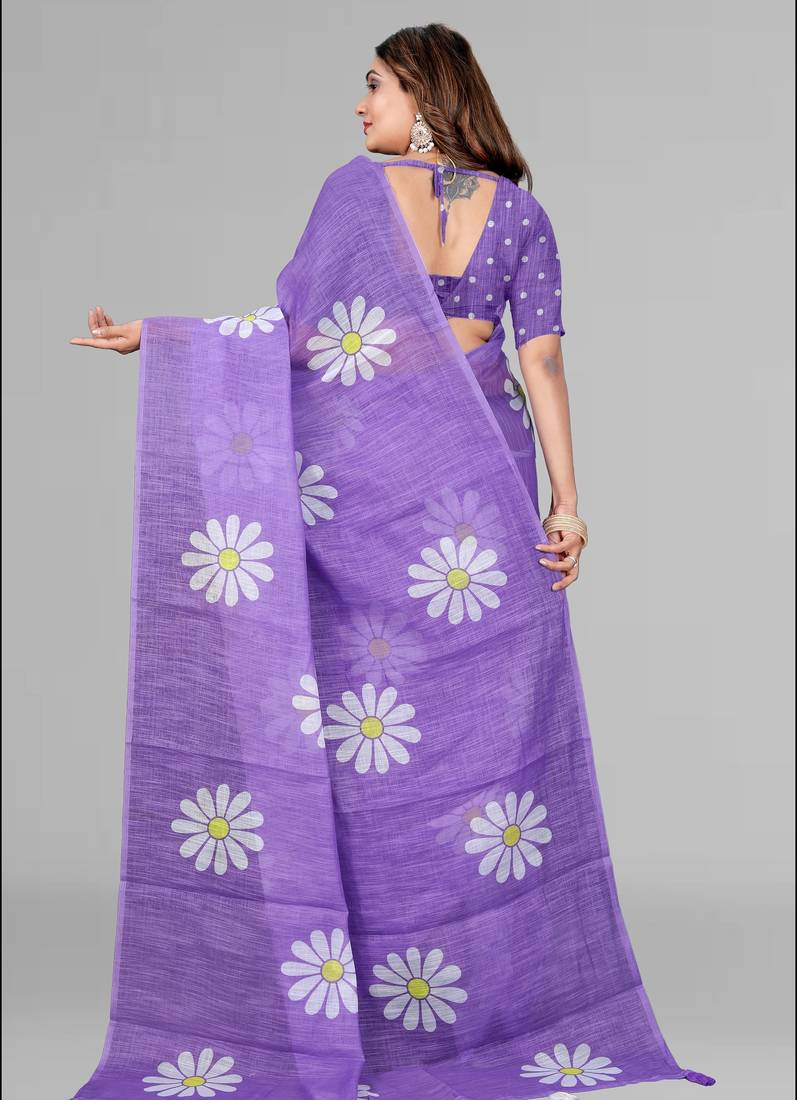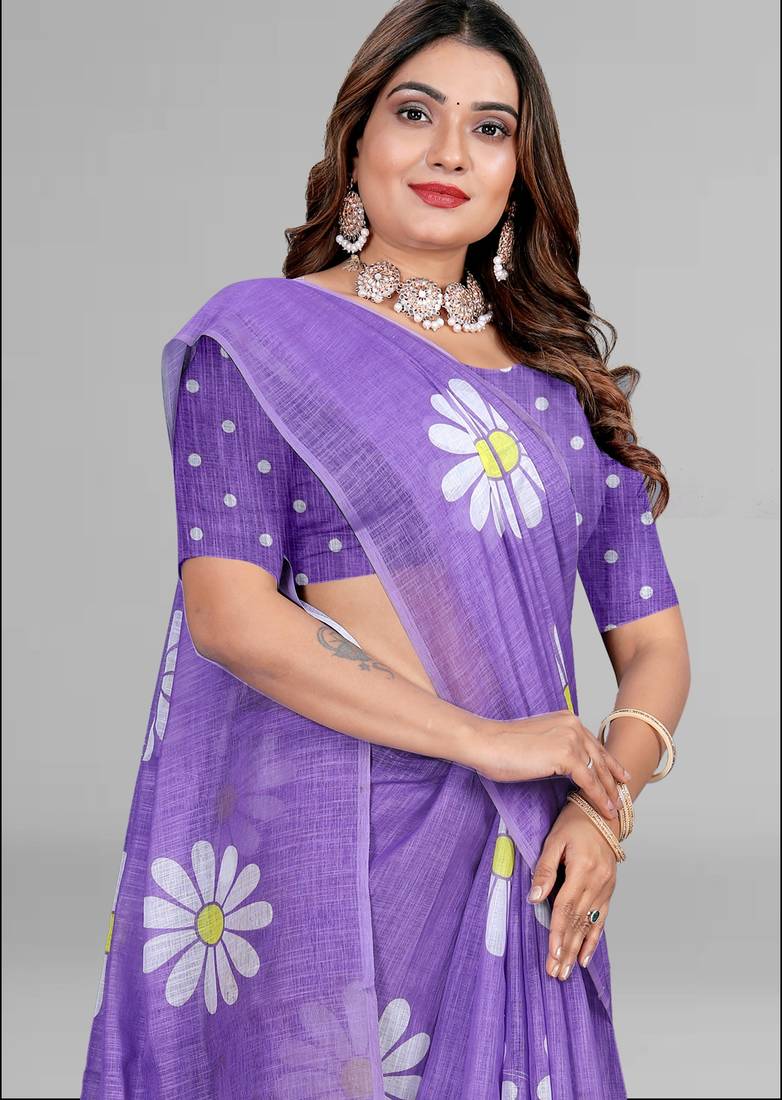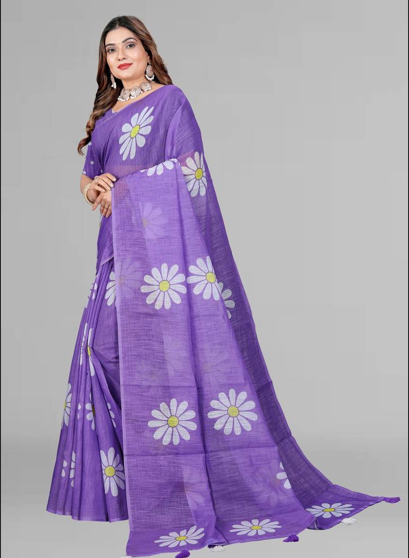 Product Name Purple Floral Linen Cotton Digital Print Saree (Purple)