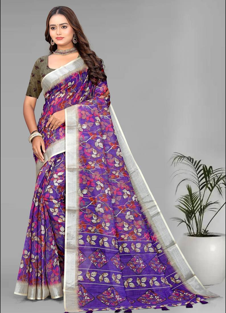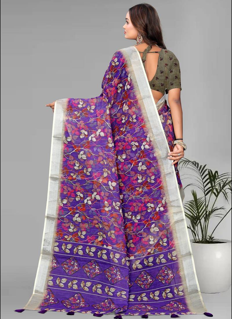 | Product Name | Purple Floral Linen Cotton Digital Print Saree (Purple) | |