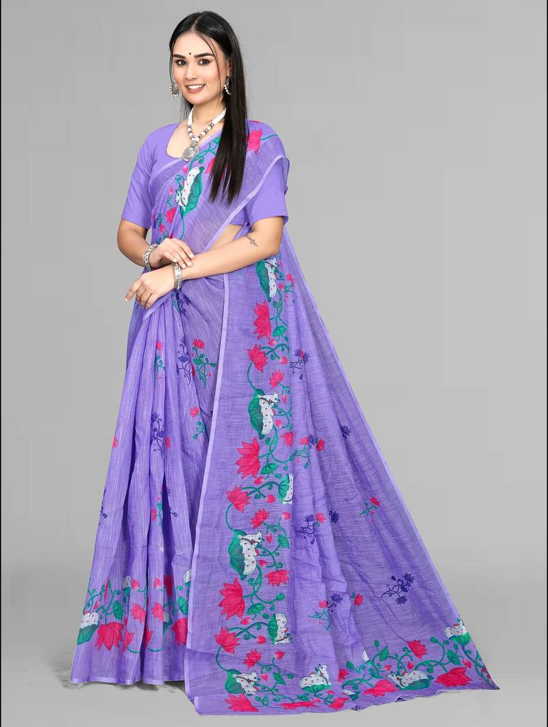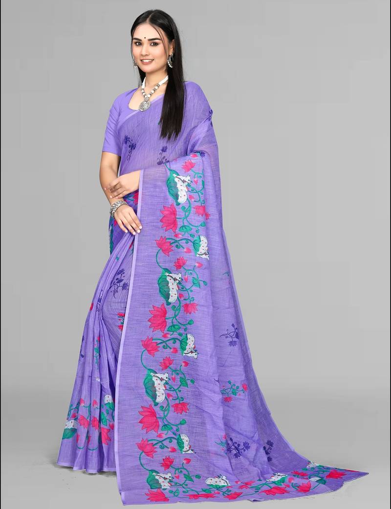| Product Name | Purple Floral Linen Cotton Digital Print Saree (Purple) | |