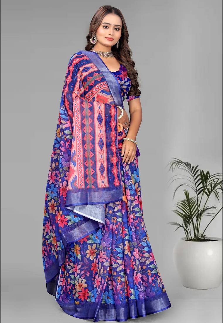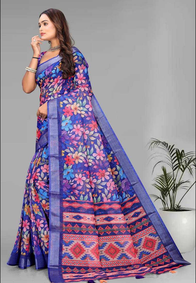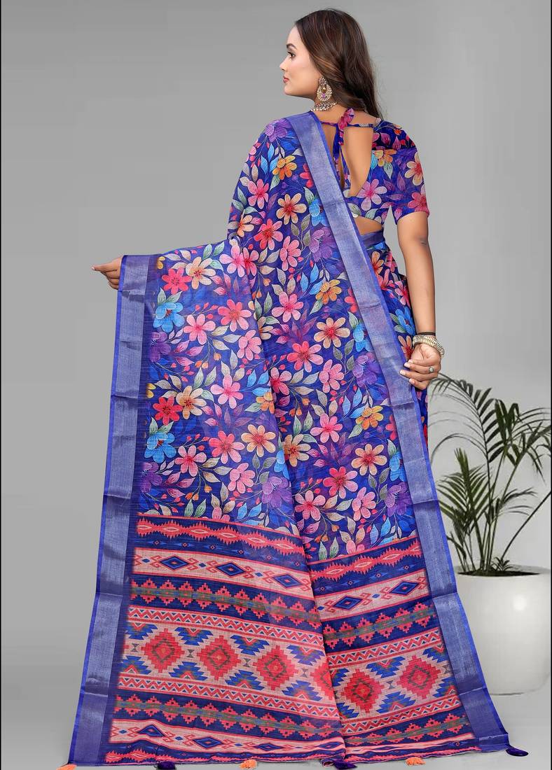 | Product Name | Blue Floral Linen Cotton Digital Print Saree (Purple) | |