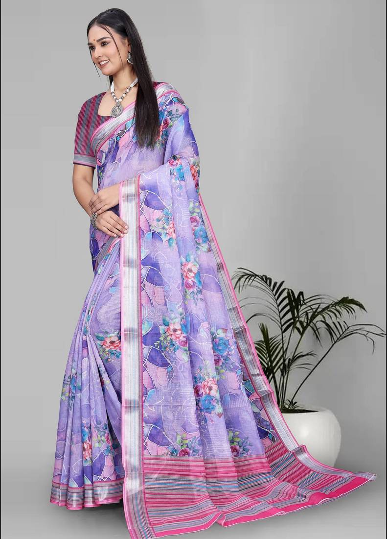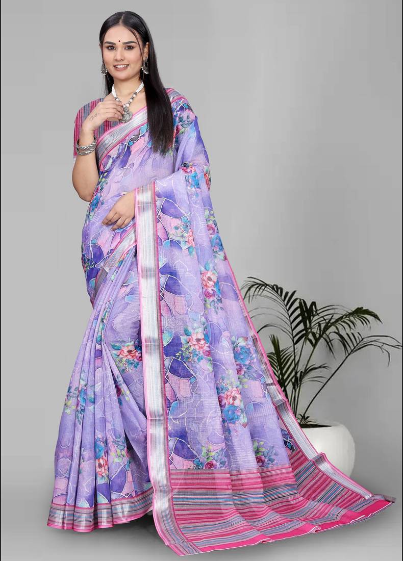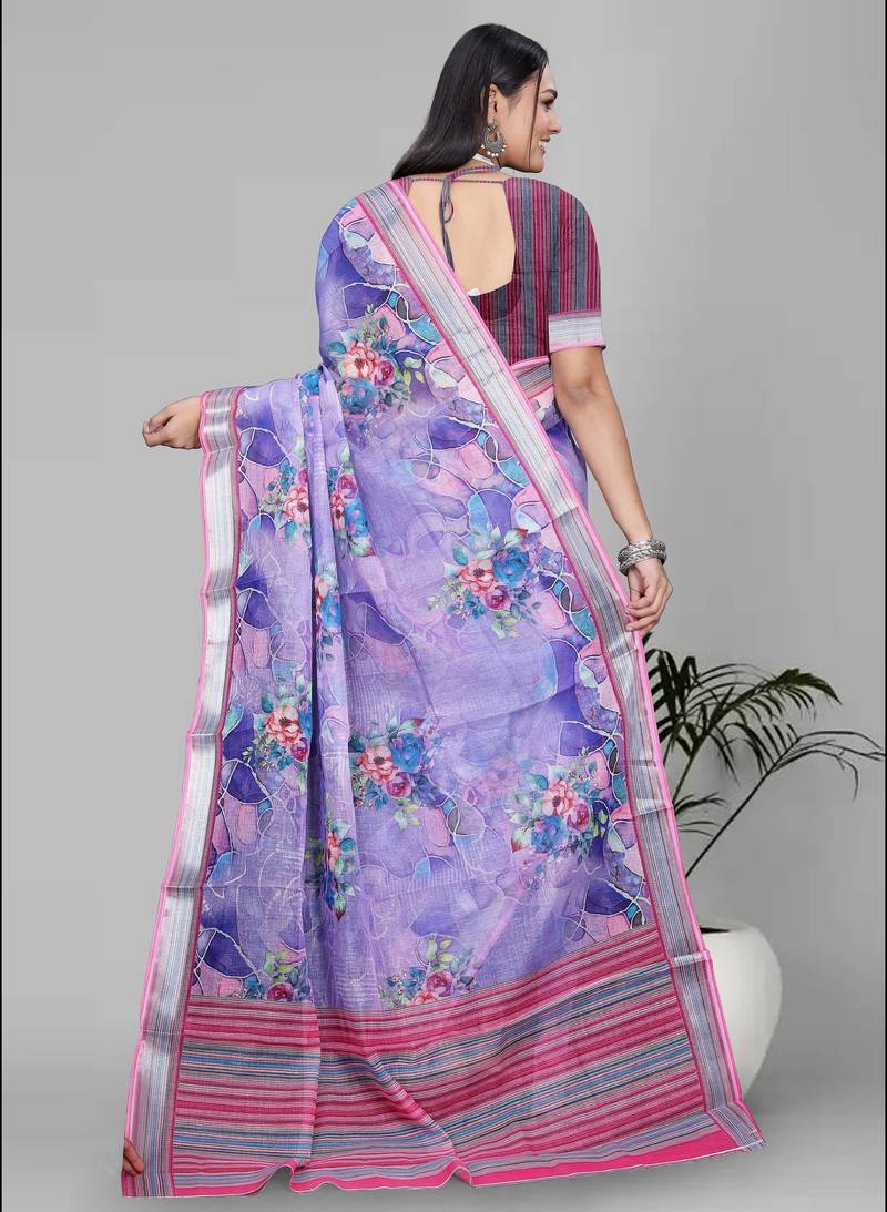 | Product Name | Purple Floral Linen Cotton Digital Print Saree (Purple) | |