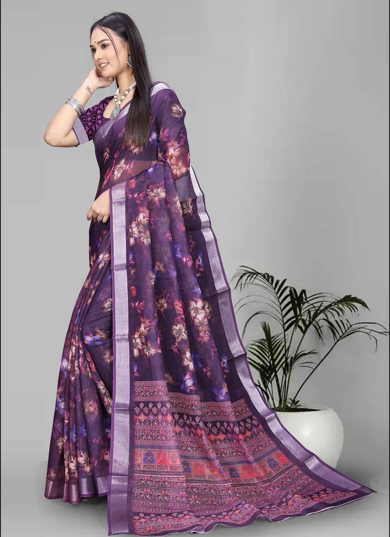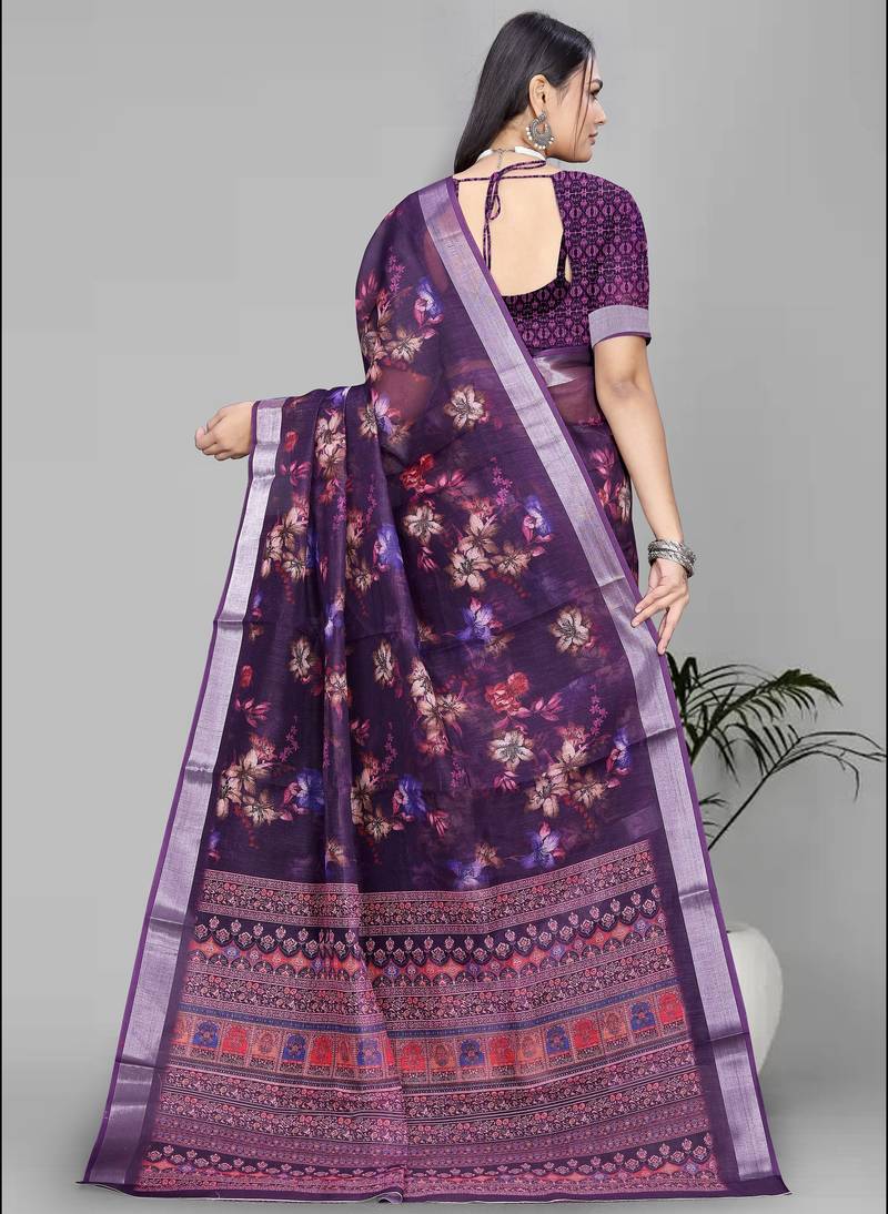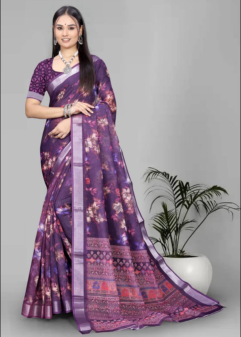 | Product Name | Wine Floral Linen Cotton Digital Print Saree (Purple) | |