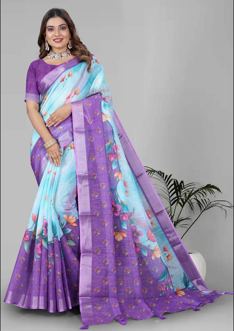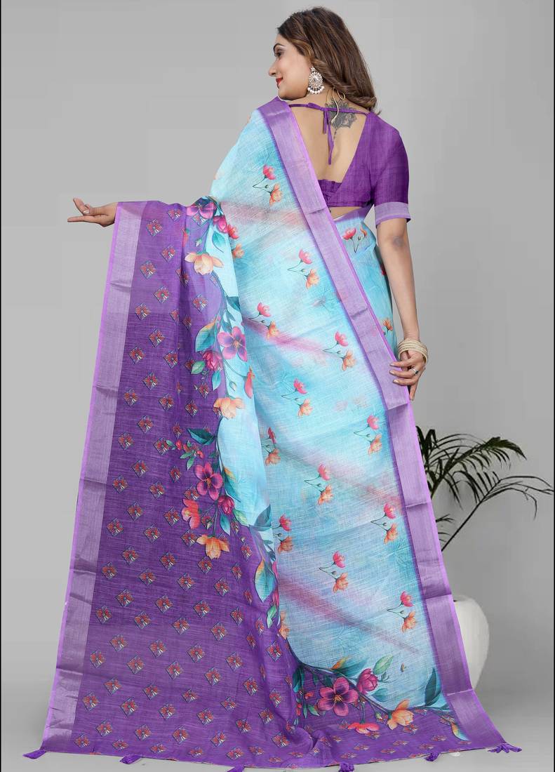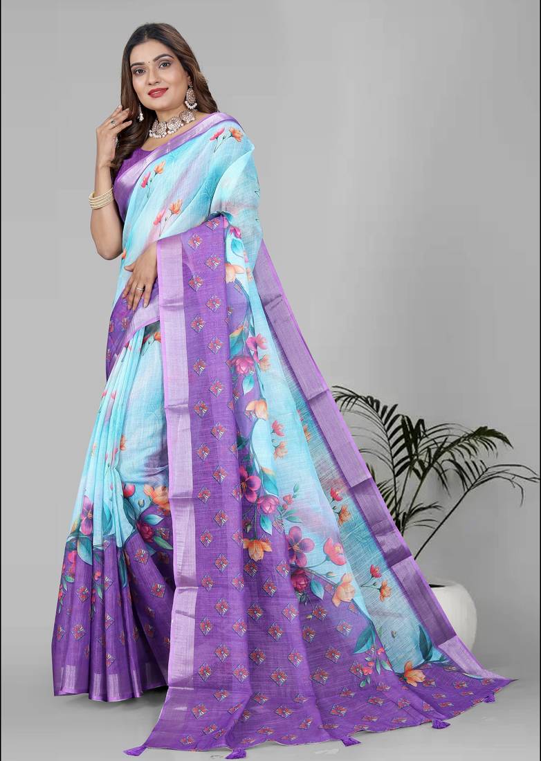 | Product Name | Sky Blue Floral Linen Cotton Digital Print Saree (Sky Blue) | |