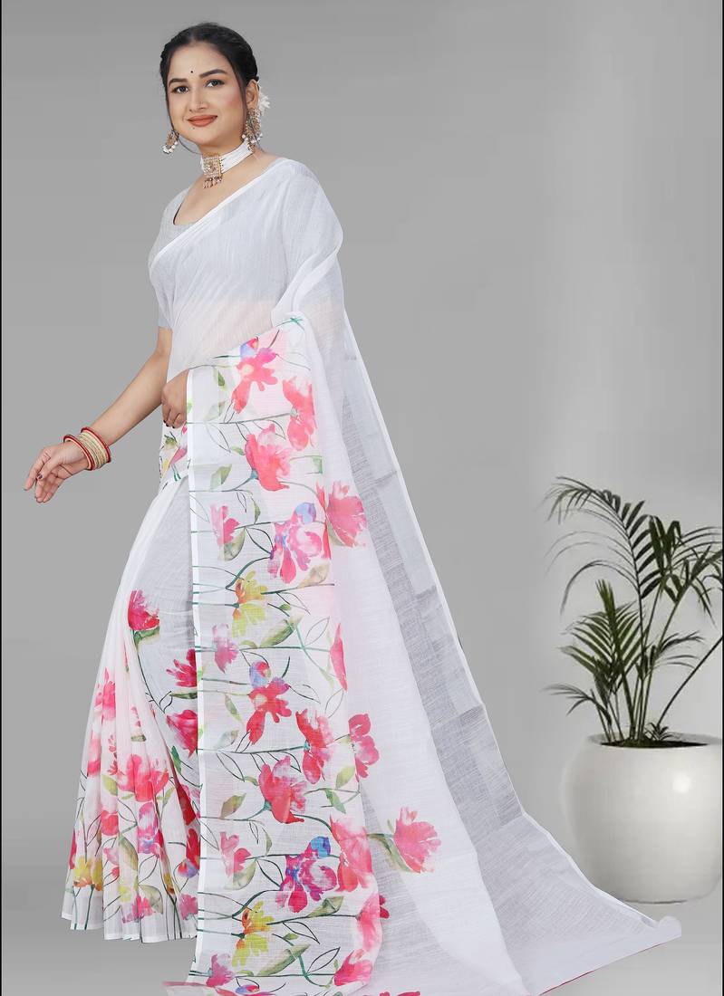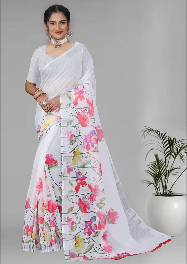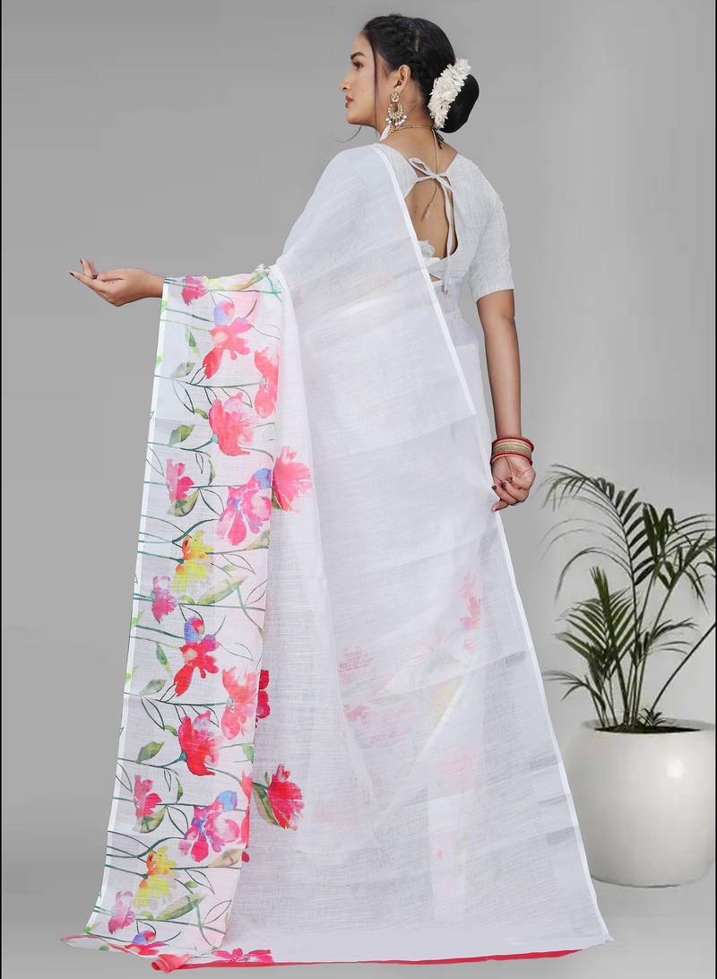 | Product Name | White Floral Linen Cotton Digital Print Saree (White) | |