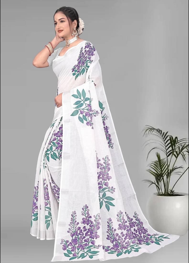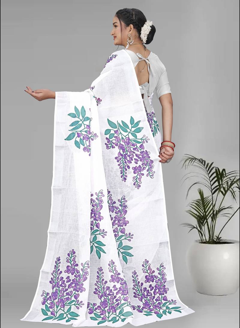 | Product Name | Off White Floral Linen Cotton Digital Print Saree (White) | |