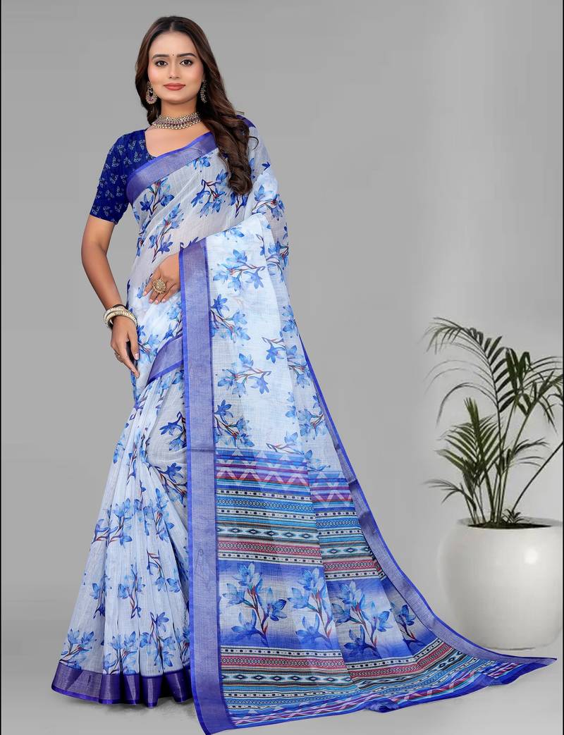 Fabric : Linen , Work: Digital Print , Saree Length: 6.3 (With Blouse ) , Blouse Fabric: Linen