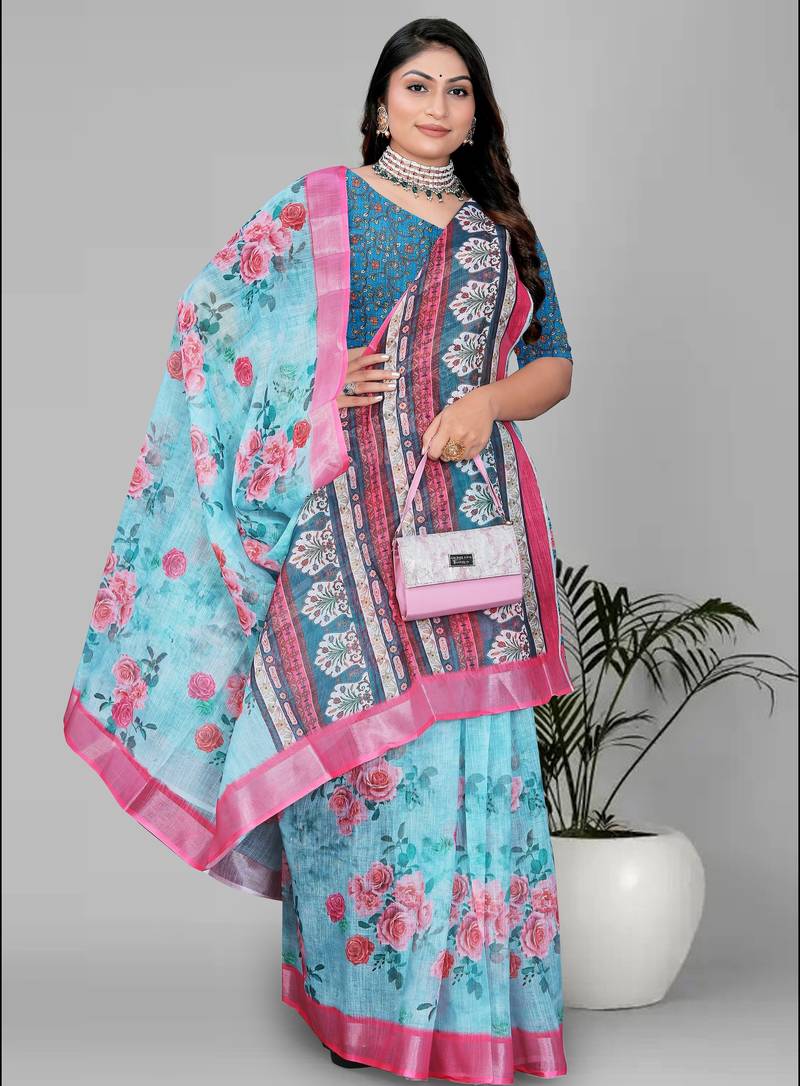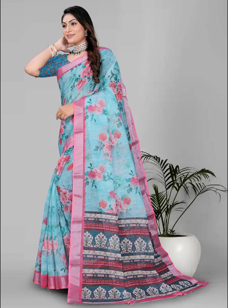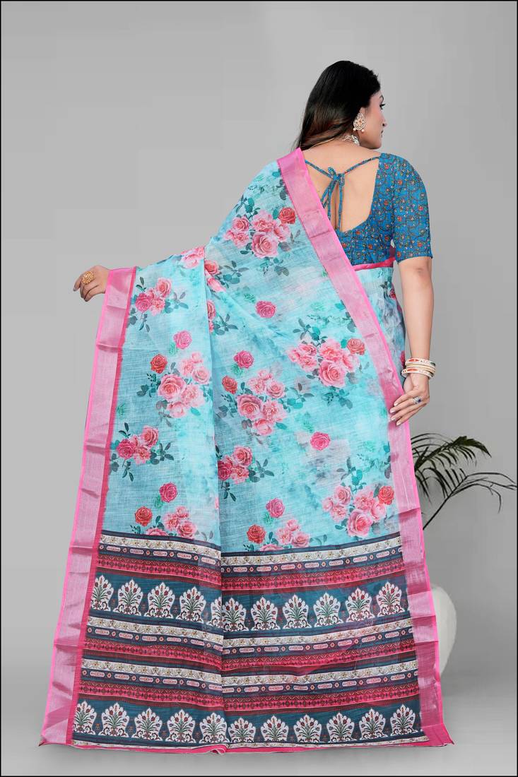 | Product Description | Fabric : Linen , Work: Digital Print , Saree Length: 6.3 (With Blouse ) , Blouse Fabric: Linen |