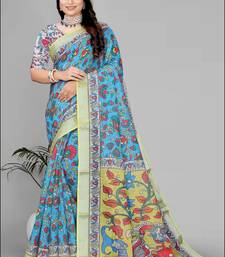 Sky blue linen cotton digital print saree