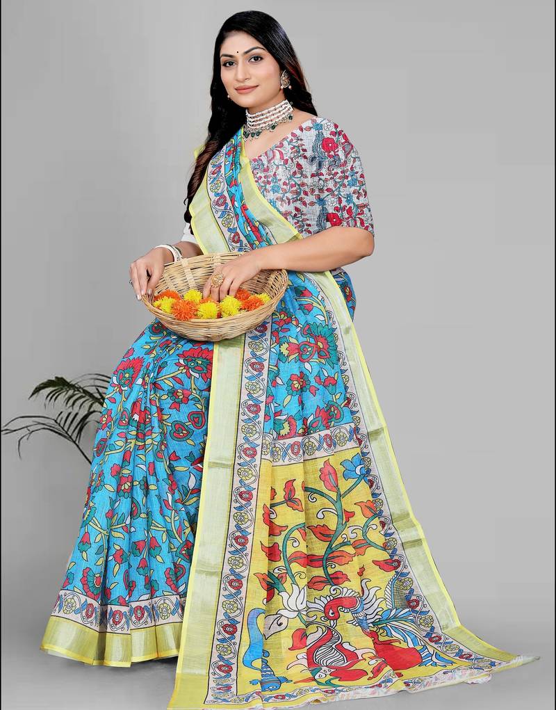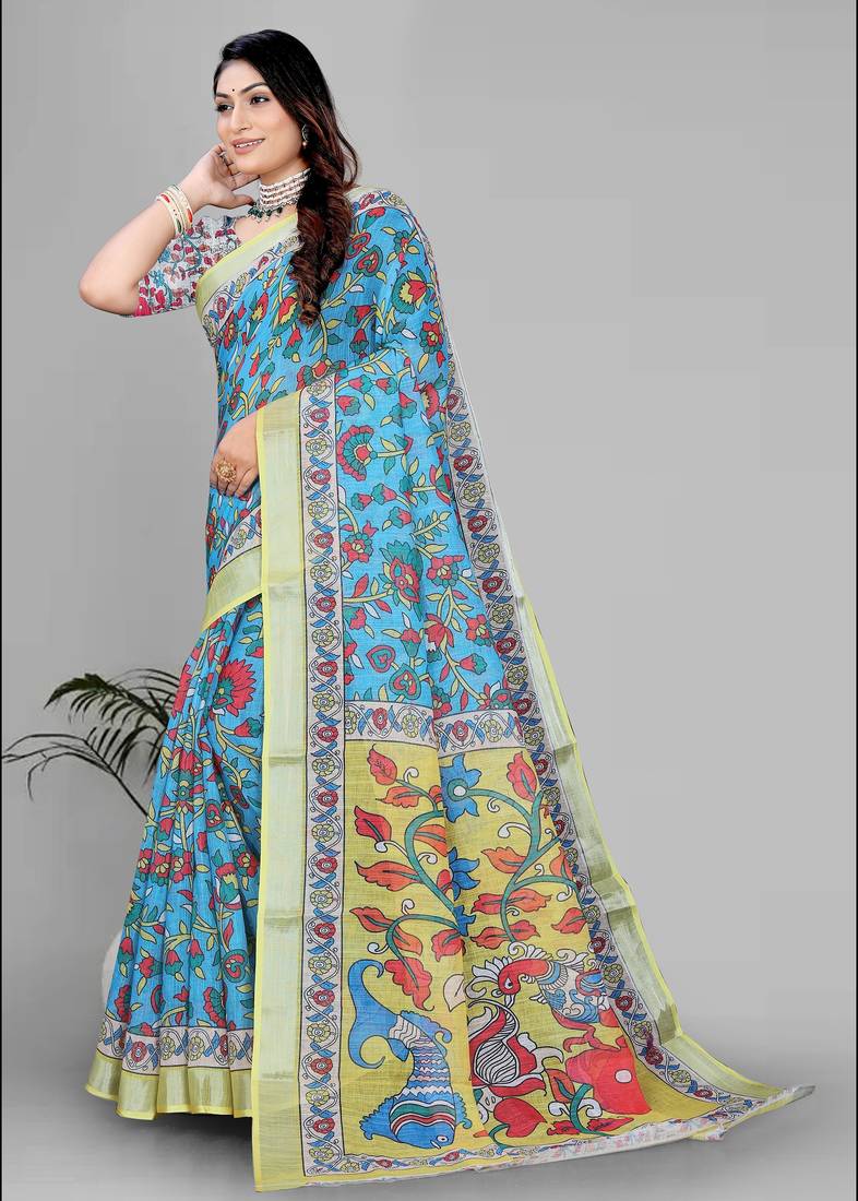 | Product Description | Fabric : Linen , Work: Digital Print , Saree Length: 6.3 (With Blouse ) , Blouse Fabric: Linen |