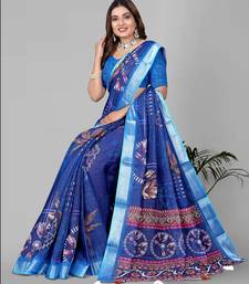 Blue linen cotton digital print saree (blue)