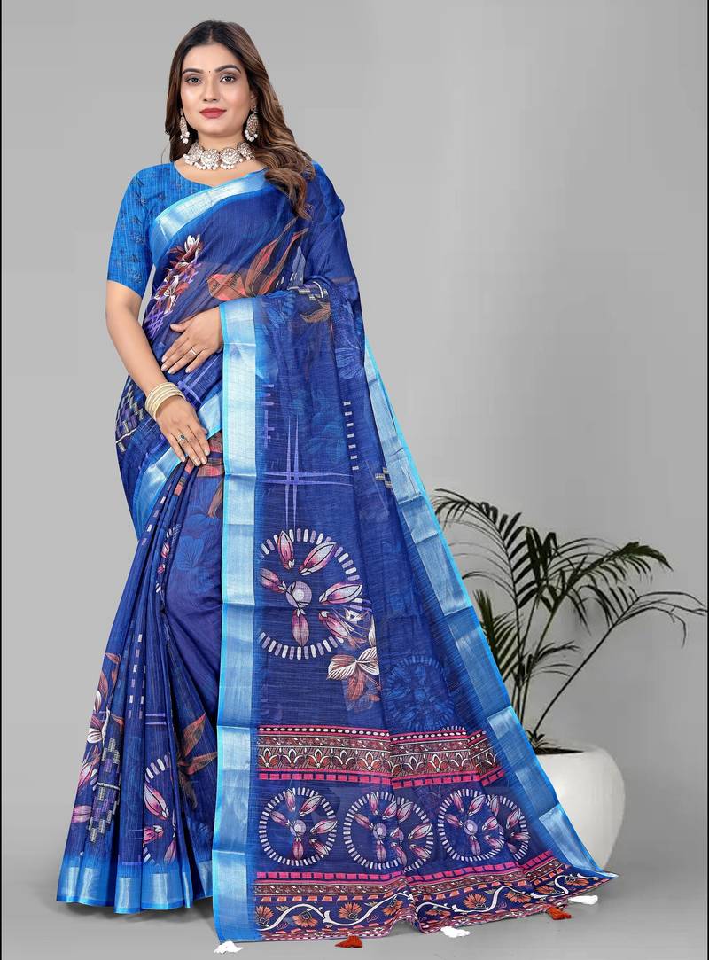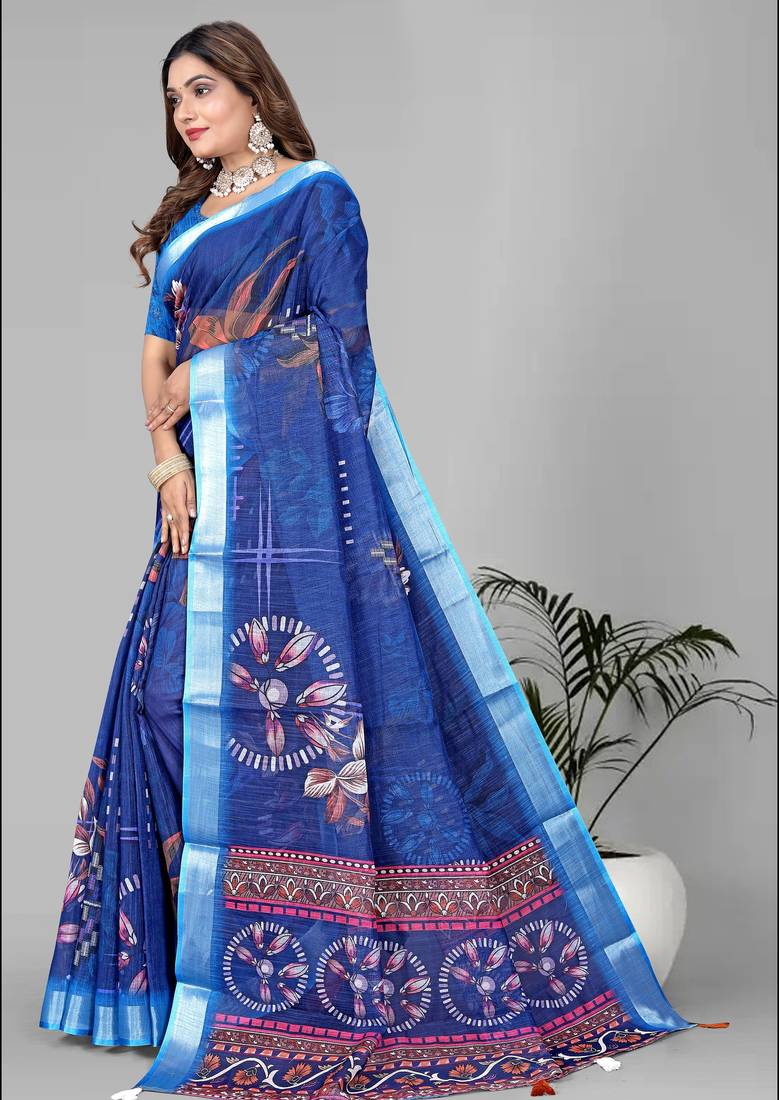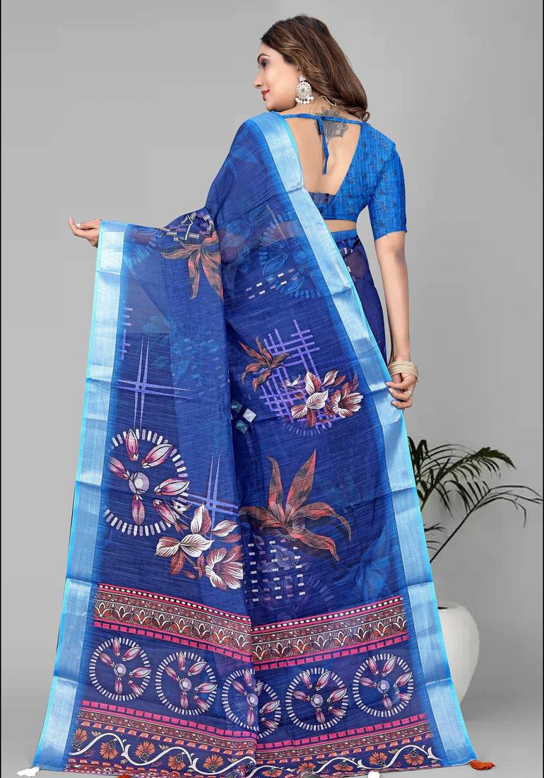 | Product Name | Blue Linen Cotton Digital Print Saree (Blue) | |