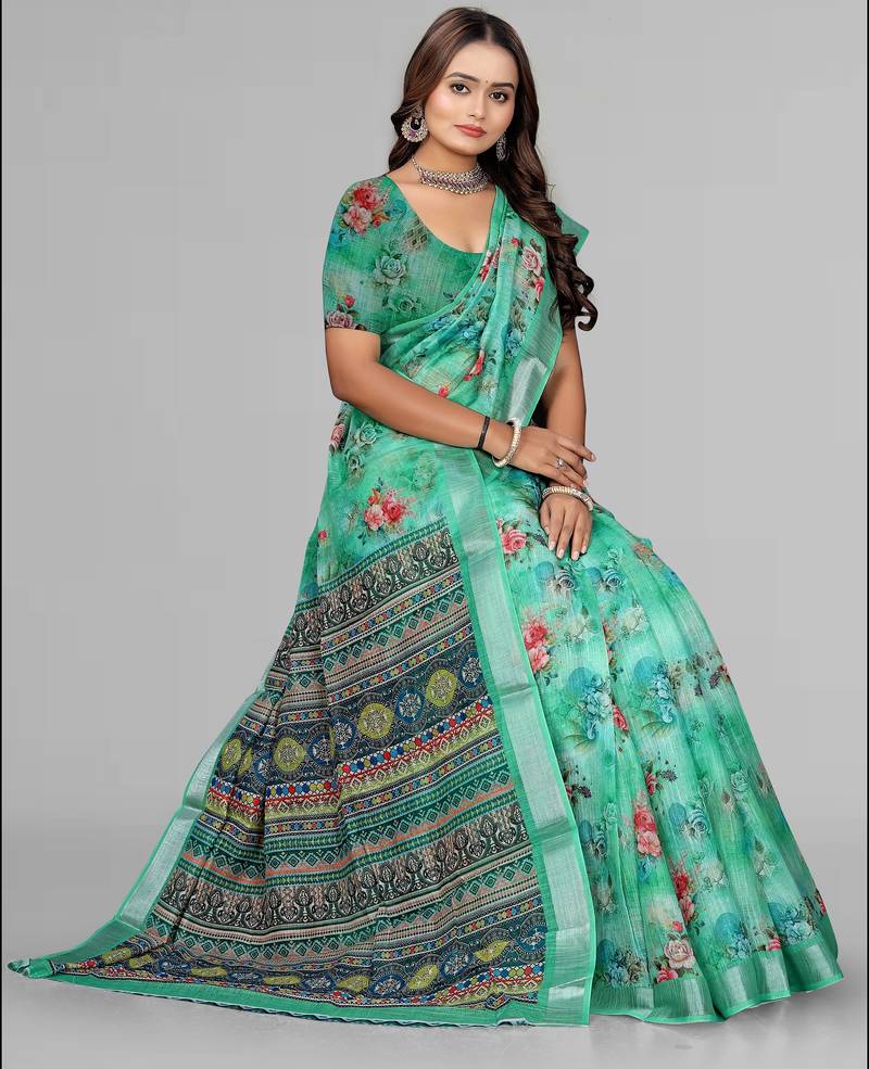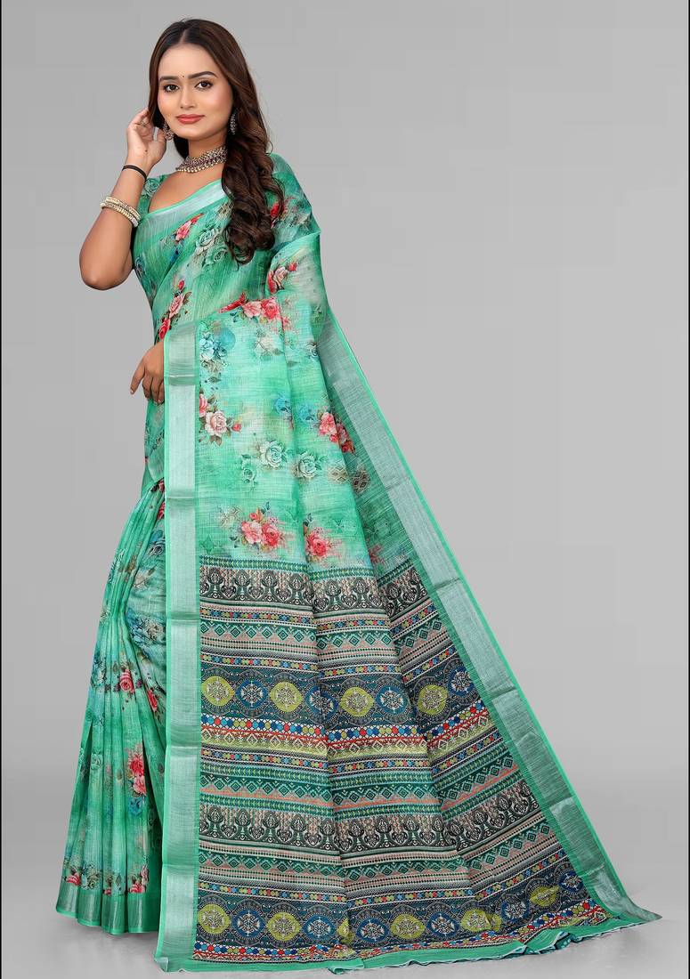| Product Name | Green Linen Cotton Digital Print Saree (Green) | |