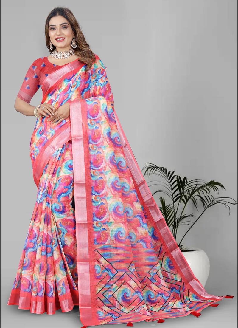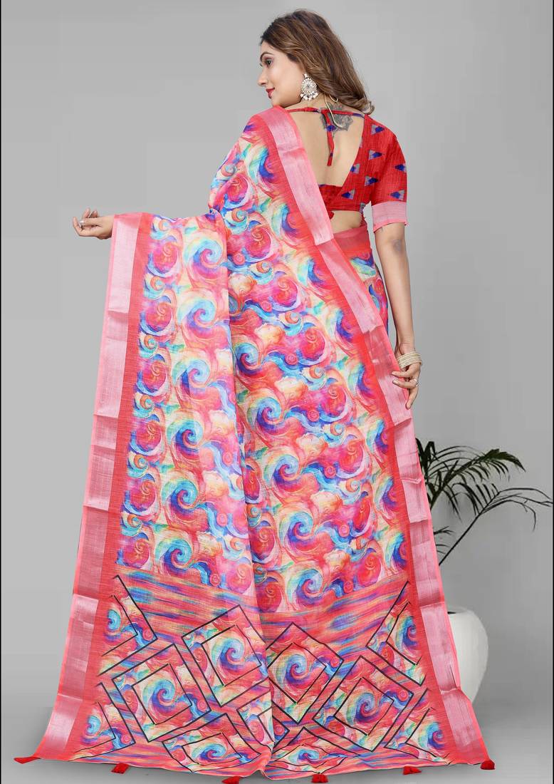 | Product Name | Multicolour Linen Cotton Digital Print Saree (Pink) | |