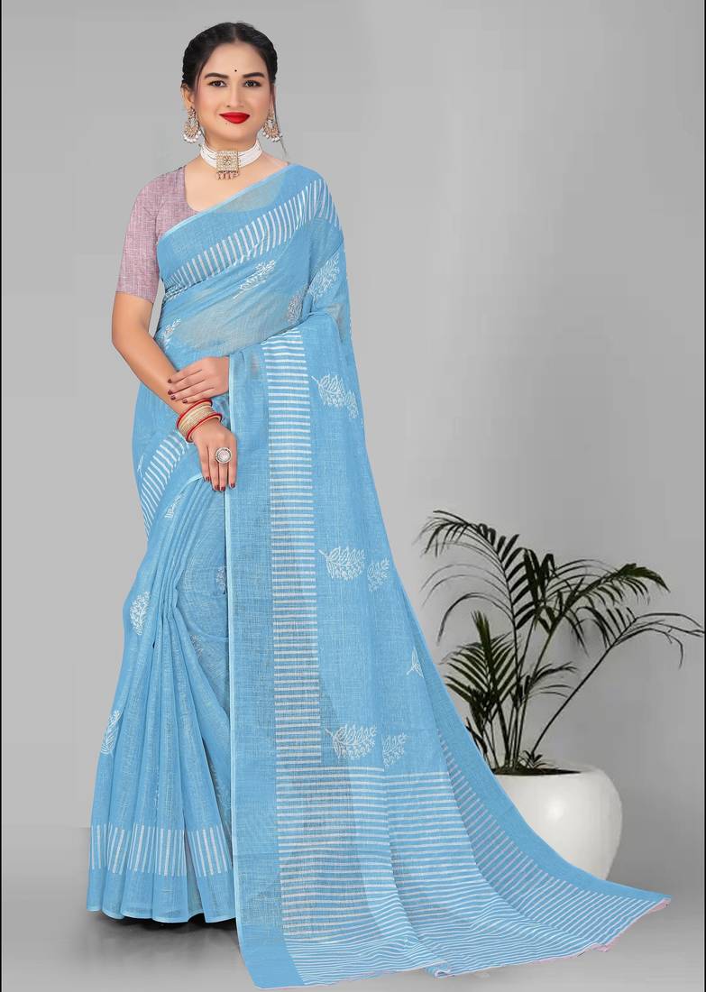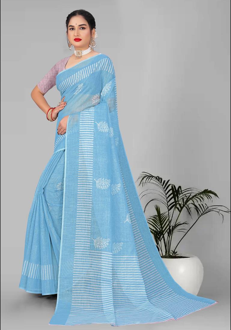 | Product Name | Sky Blue Linen Cotton Digital Print Saree (Sky) | |