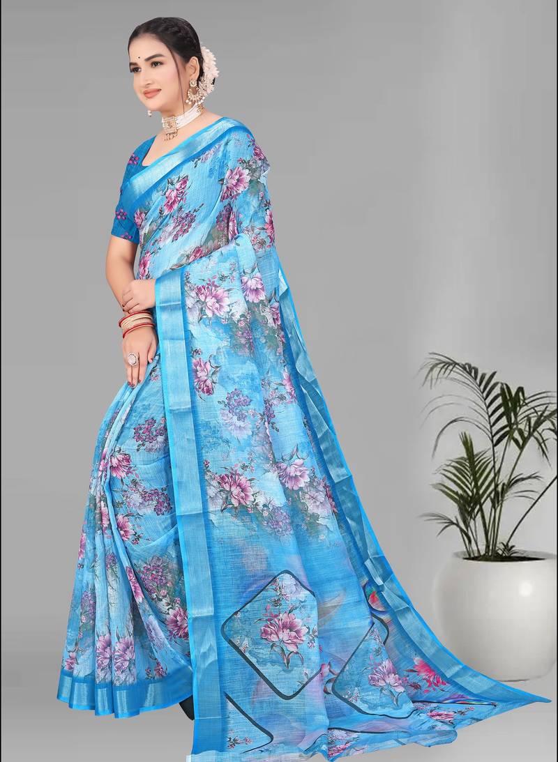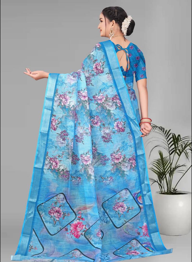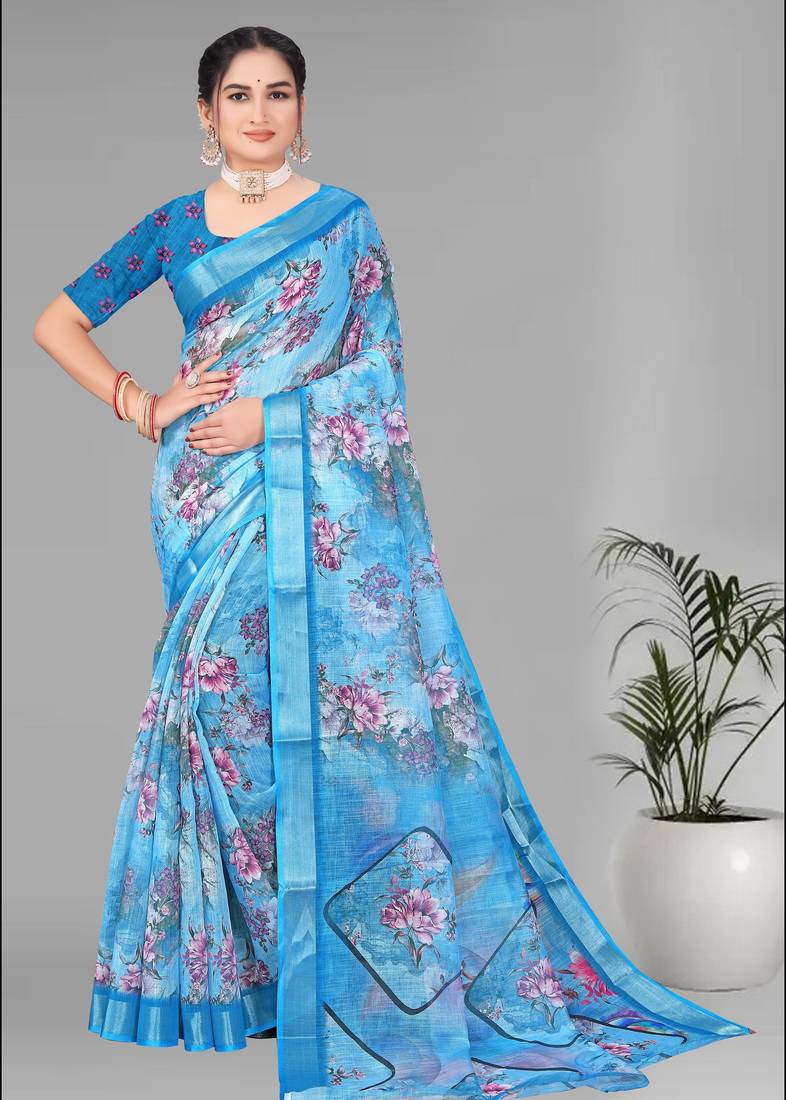 | Product Name | Blue Linen Cotton Digital Print Saree (Sky Blue) | |