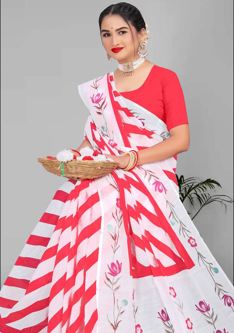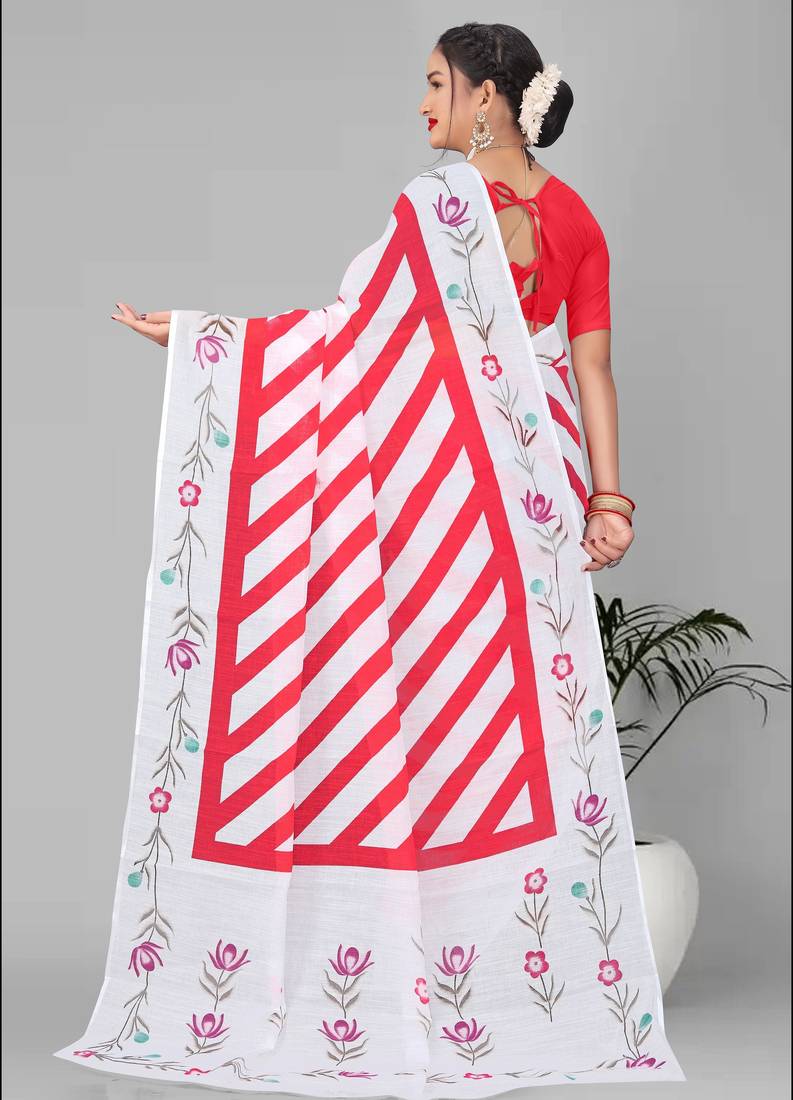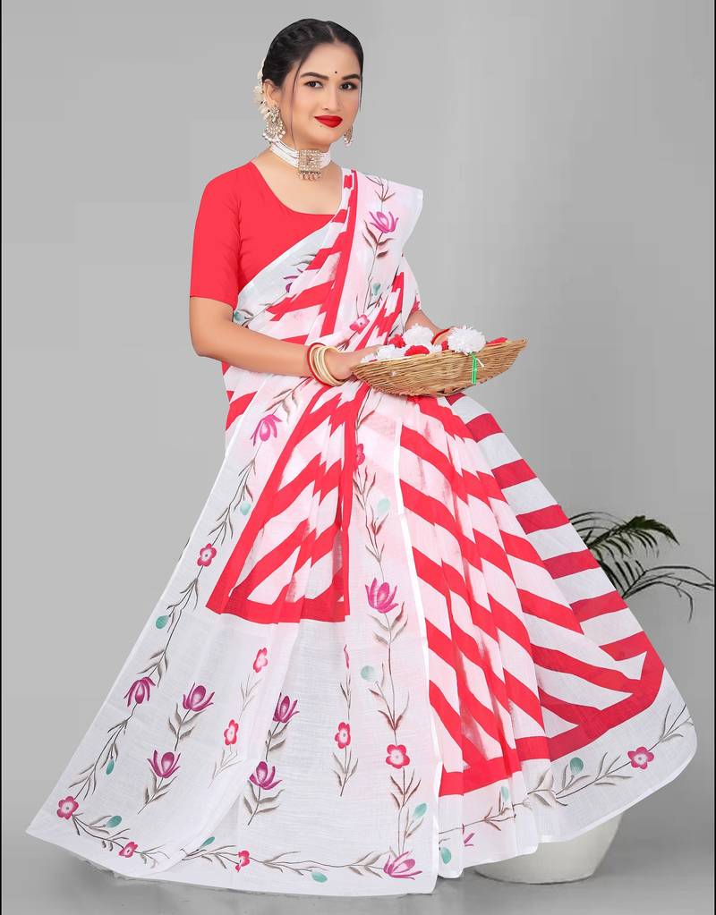 | Product Name | Red Linen Cotton Lining Digital Print Saree ( Pink ) | |
