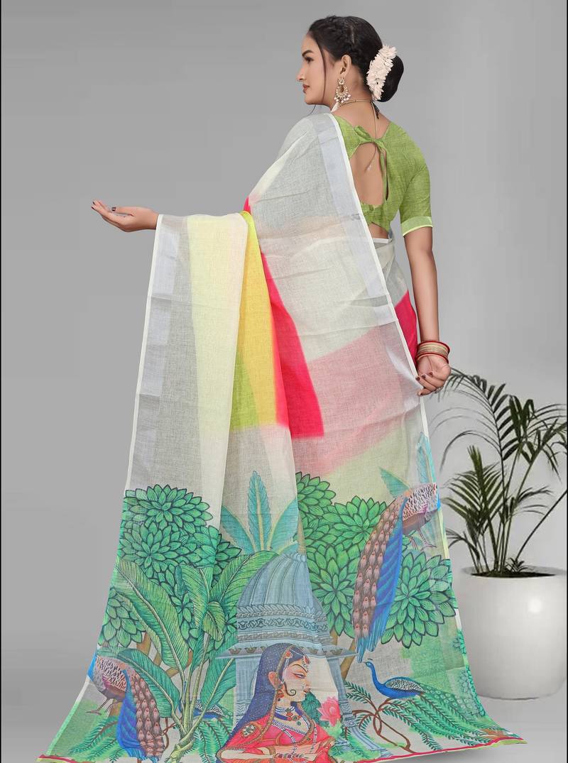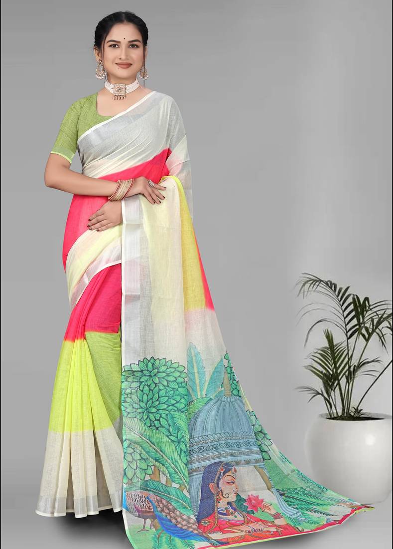 | Product Name | Multicolour Linen Digital Print Saree | |