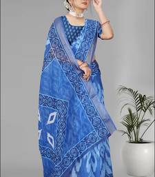 Blue linen digital print saree (blue)