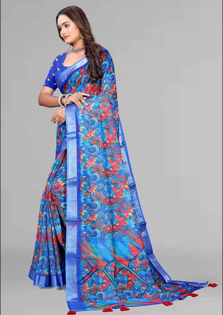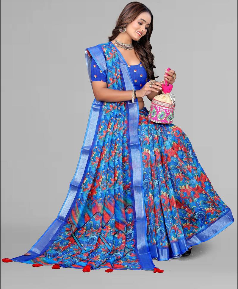 | Product Name | Blue Linen Digital Print Saree (Blue) | |