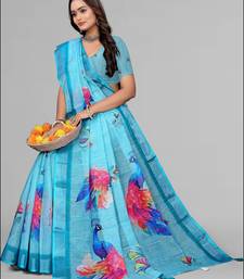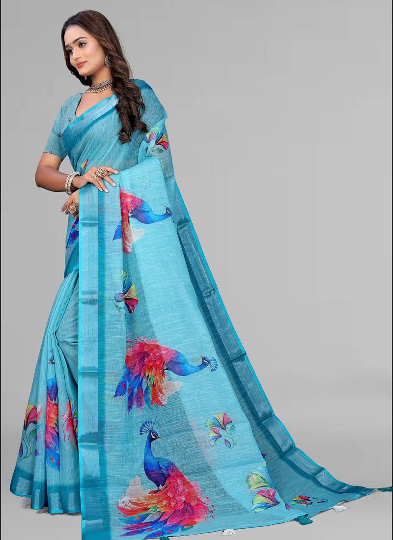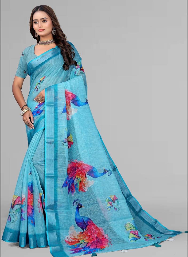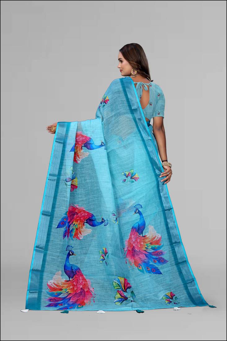 | Product Name | Sky Blue Linen Digital Print Saree (Blue) | |