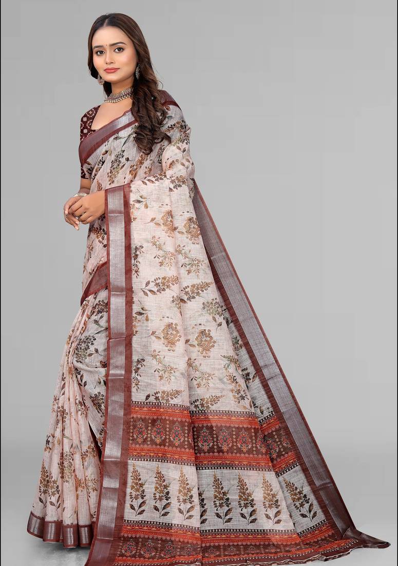| Product Name | Cream Linen Digital Print Saree (Chicku) | |