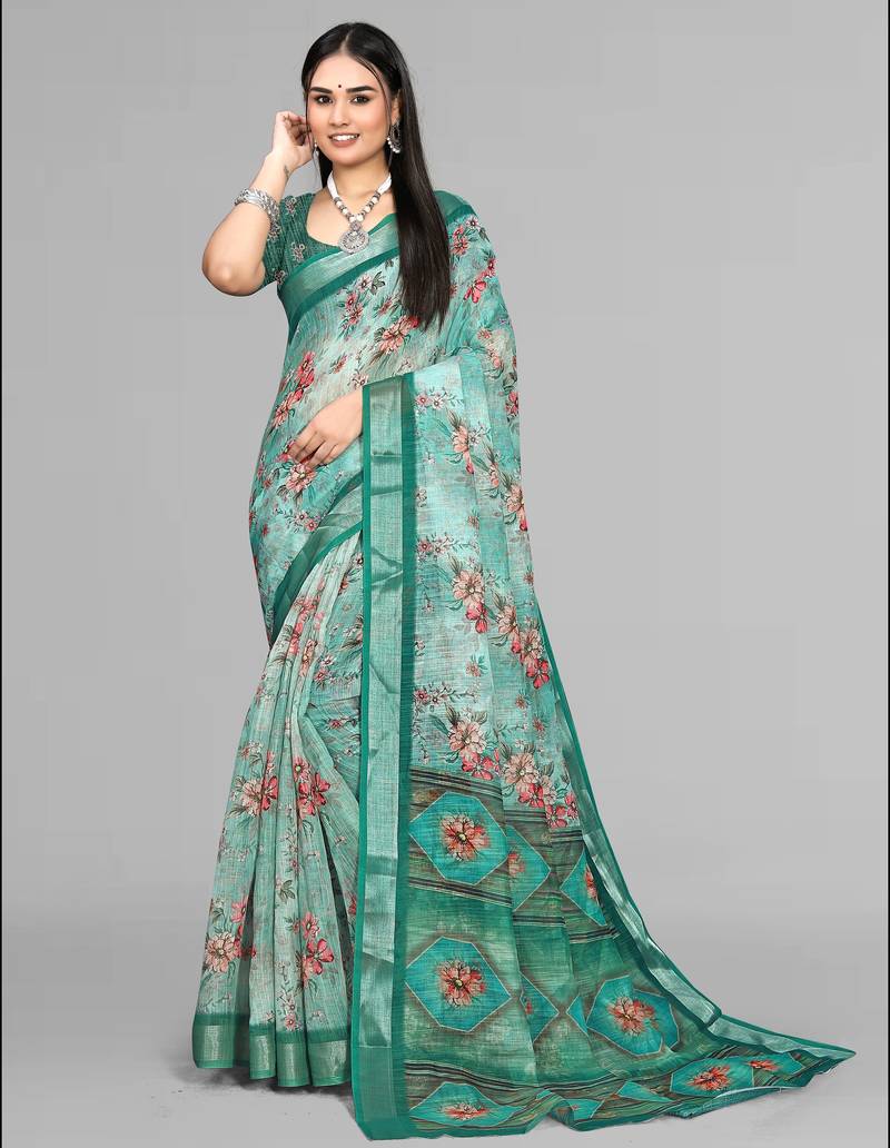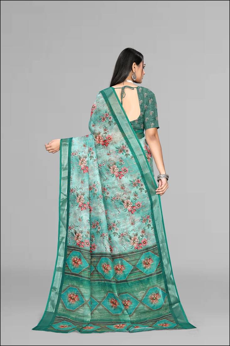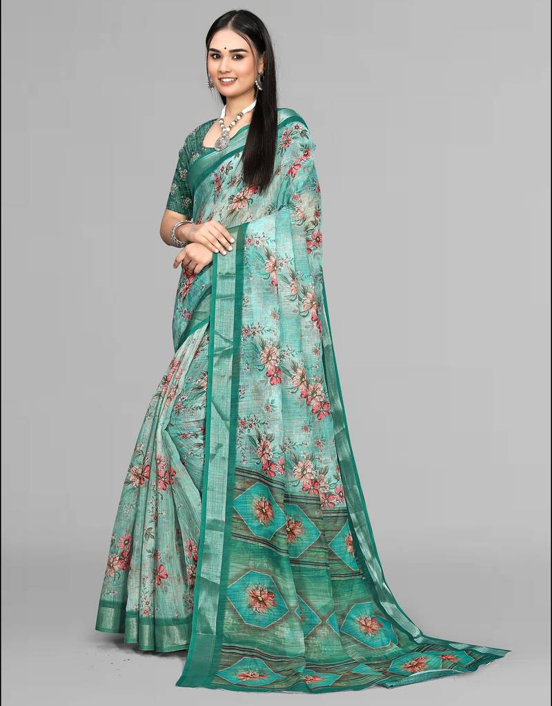 | Product Name | Green Linen Digital Print Saree (Green) | |