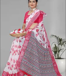 White linen digital print saree (pink)