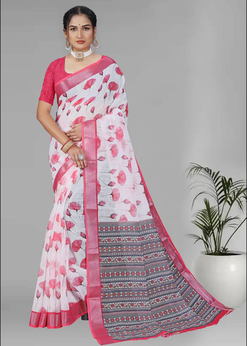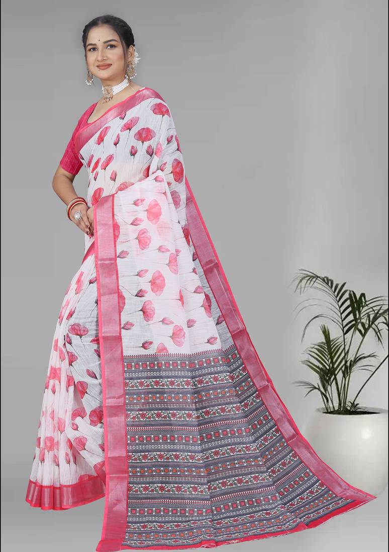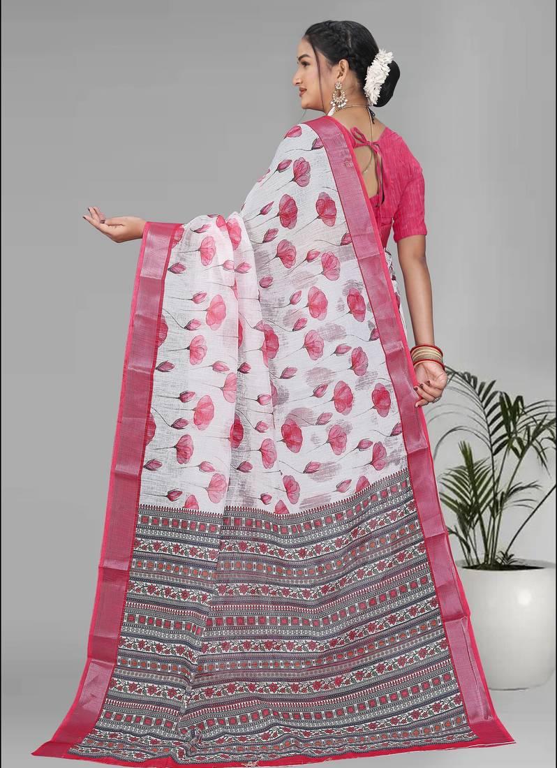 | Product Name | White Linen Digital Print Saree (Pink) | |