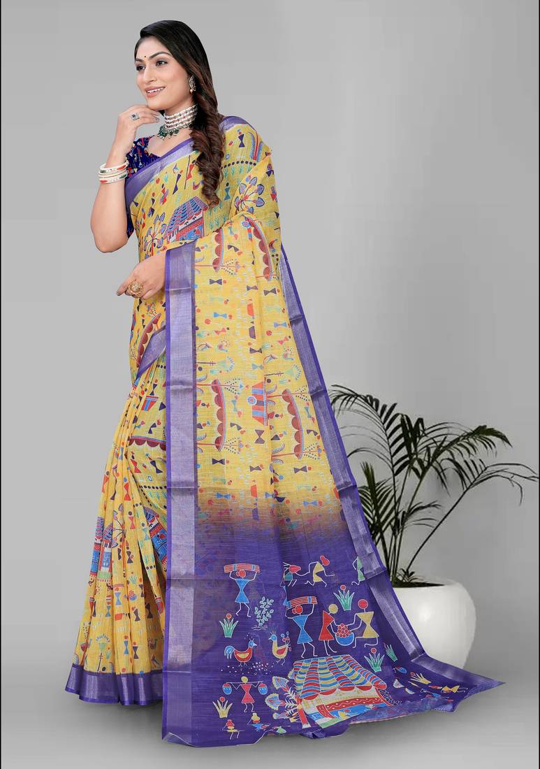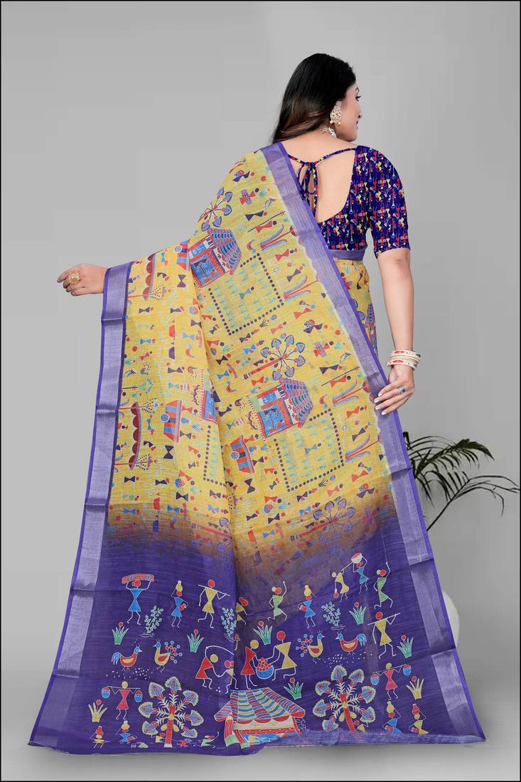 | Product Name | Mustard Warli Design Digital Print Saree | |