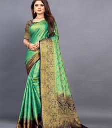 Sea green woven jacquard saree with blouse