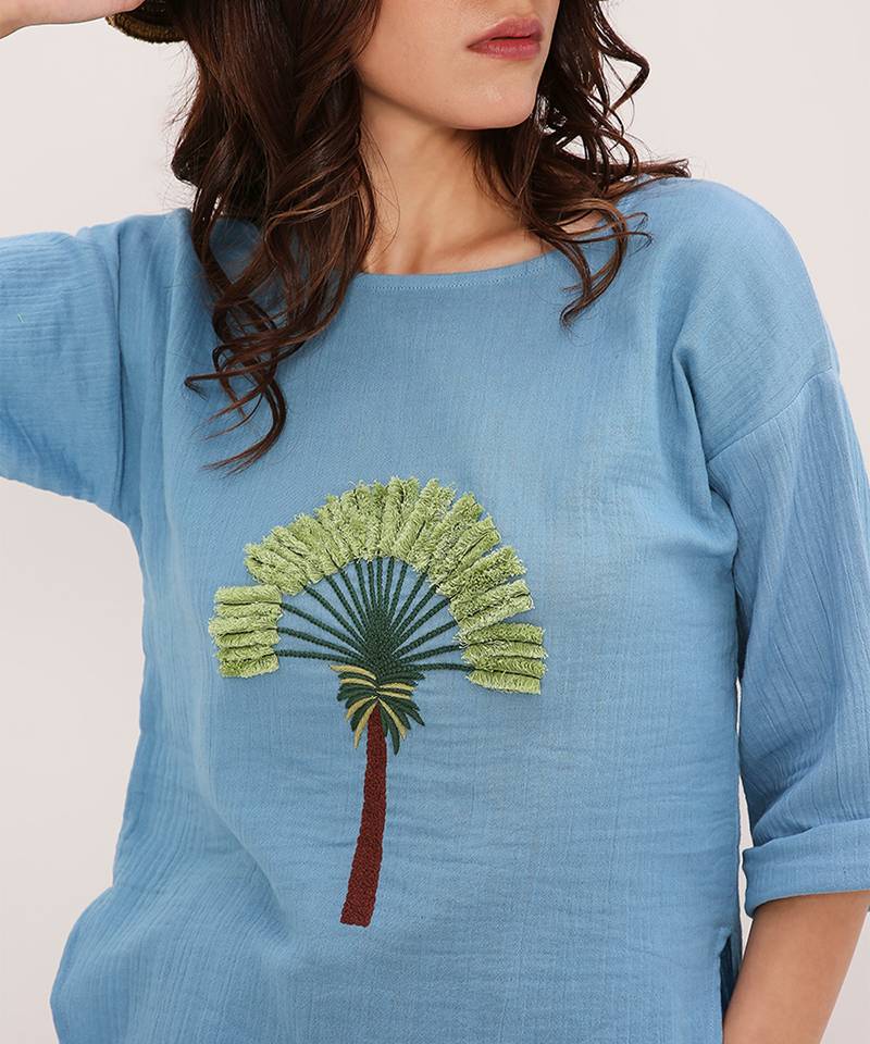 Blue and green embroidered cotton co ord set