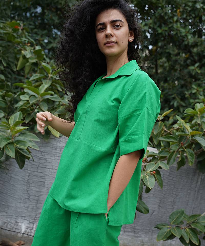 | Product Description | This Green Cotton Co Ord Set Blends Vibrant Color With Effortless Comfort. Crafted From Soft, Breathable Cotton, It Features A Coordinated Silhouette That Ensures Ease Of Wear And A Flattering Fit. Perfect For Casual Outings, Festive Gatherings, Or Everyday Styling, It Offers A Bold Yet Refined Look With Timeless Appeal.