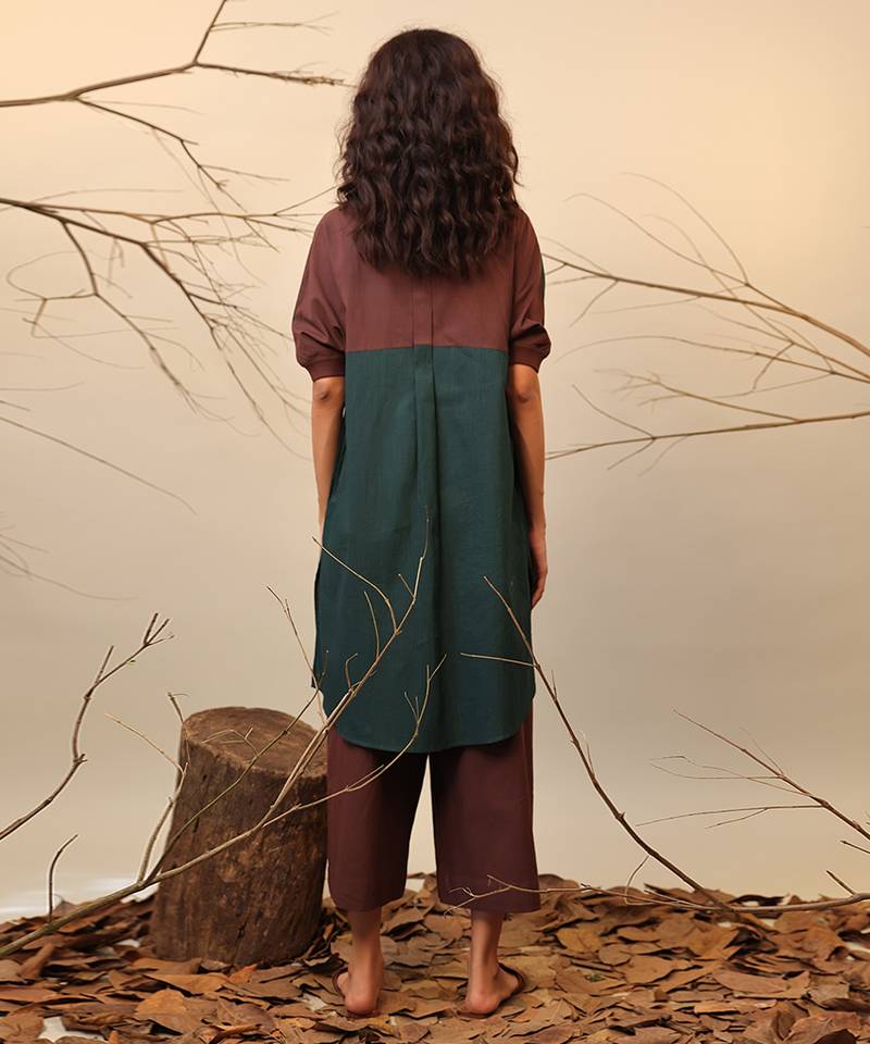 Green and brown cotton kurta