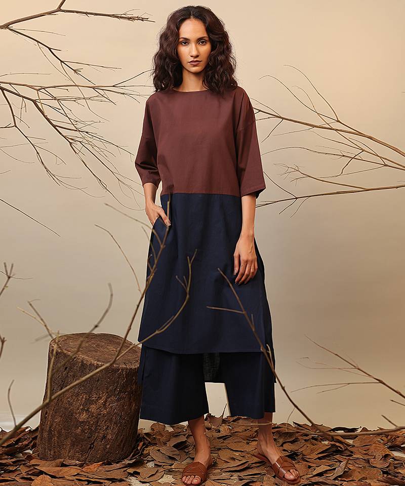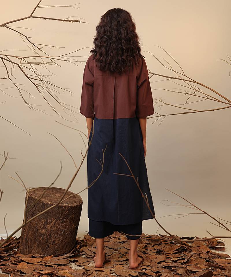 Brown and blue cotton kurta