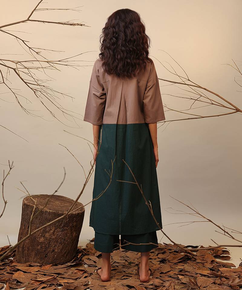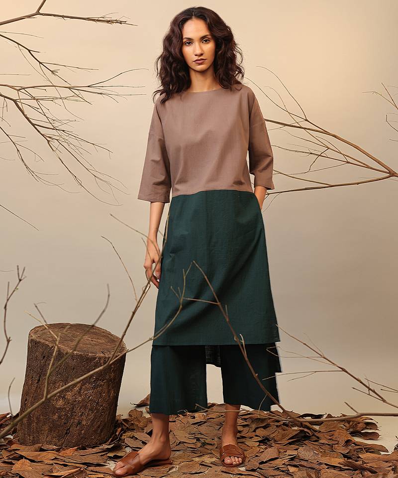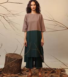 Brown and green cotton kurta set
